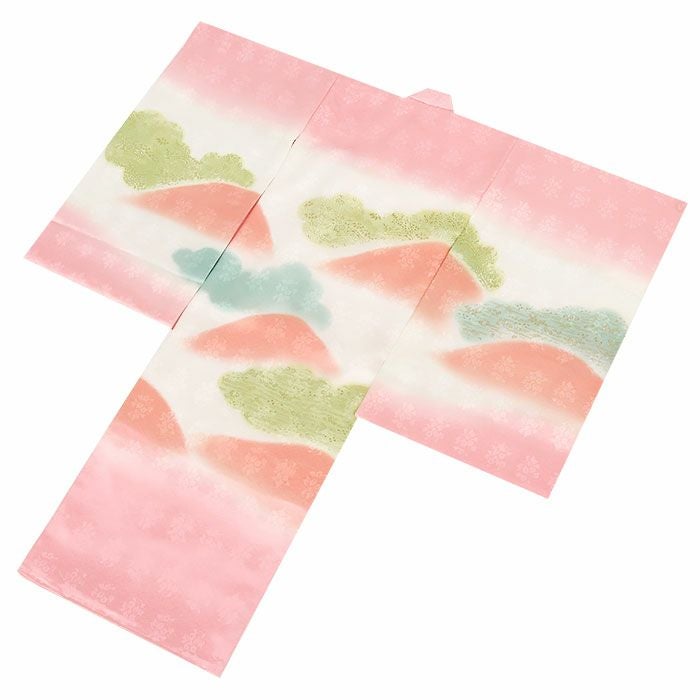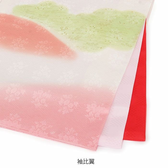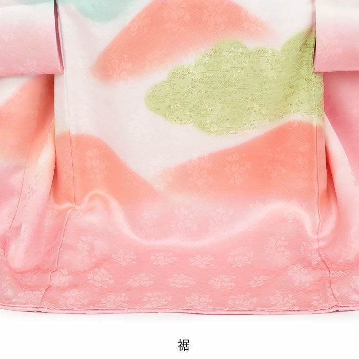≪在庫限り≫ 女の子 赤ちゃんのお宮参りの着物 お宮参り 着物 女の子 絹100% 正絹初着 掛け着 産着 ピンク 桃 薄橙 水色 かすみ 友禅 経済産業大臣指定伝統的工芸品 金彩 箔使い ぼかし 新品 日本製