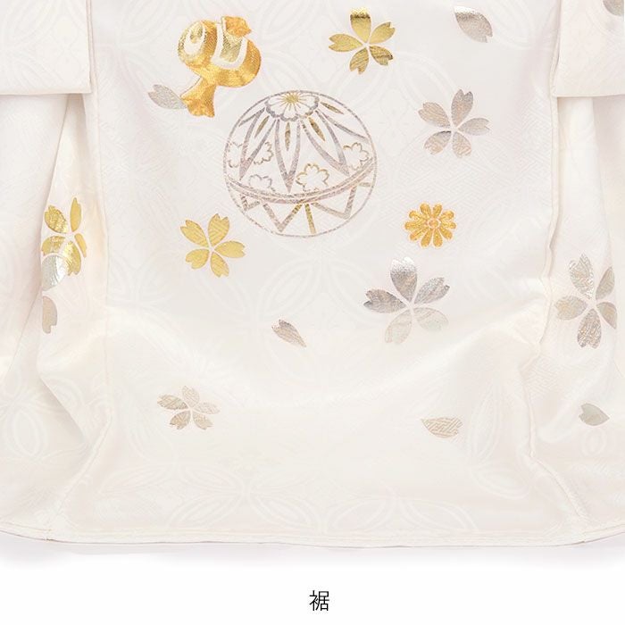 ≪在庫限り≫ 女の子 赤ちゃんのお宮参りの着物 お宮参り 着物 女の子 絹100% 正絹初着 掛け着 産着 ホワイト 白 宝尽くし 吉祥花 友禅 経済産業大臣指定伝統的工芸品 金駒刺繍 金銀箔 箔使い 金彩 新品 日本製