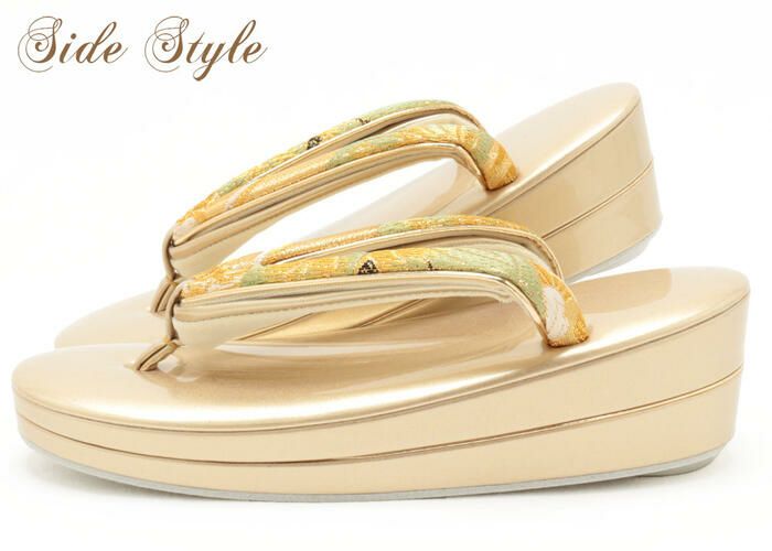 ≪在庫限り≫晴れ着はもちろん、普段のおしゃれ着物に 草履 成人式 振袖用 普段用 成人用 レディース 彩小径 フリー L ピンク ゴールド 金 メタリック ベロア 合成皮革 3枚芯 日本製