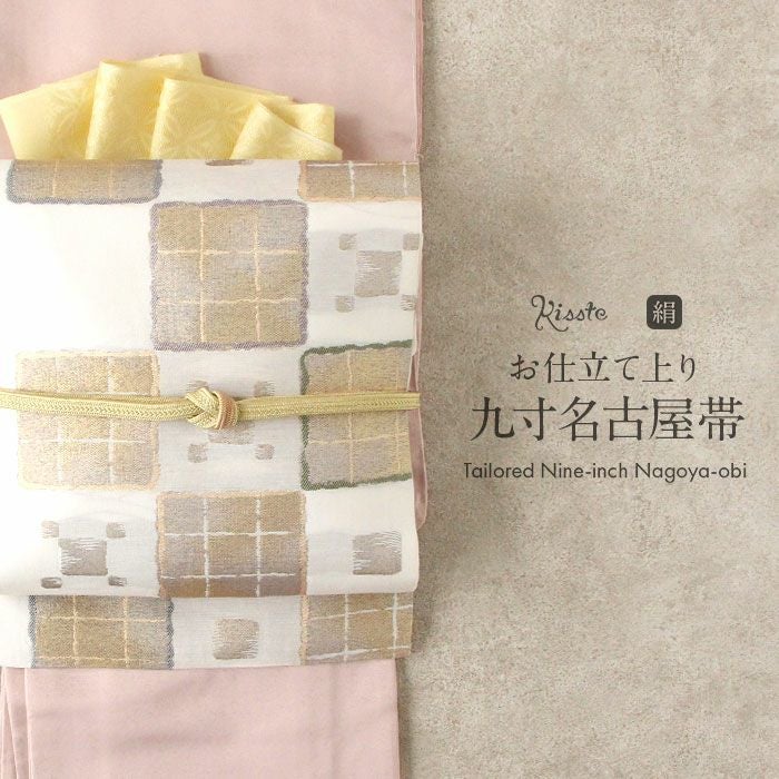 《お仕立て上り》【最短日お届け】小紋 紬 色無地 御召 などのお着物に 名古屋帯 アイボリー 白 変わり市松 三幸織物 普段用 九寸 仕立て上がり 絹 未使用 新品 オールシーズン