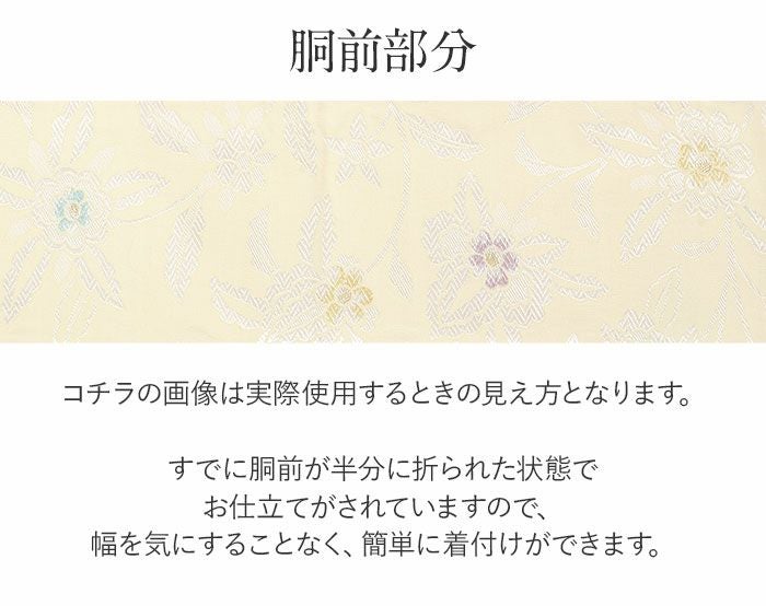 《お仕立て上り》【最短日お届け】小紋 紬 色無地 御召 などのお着物に 名古屋帯 アイボリー 白 リーフ 三幸織物 普段用 九寸 仕立て上がり 絹 未使用 新品 オールシーズン