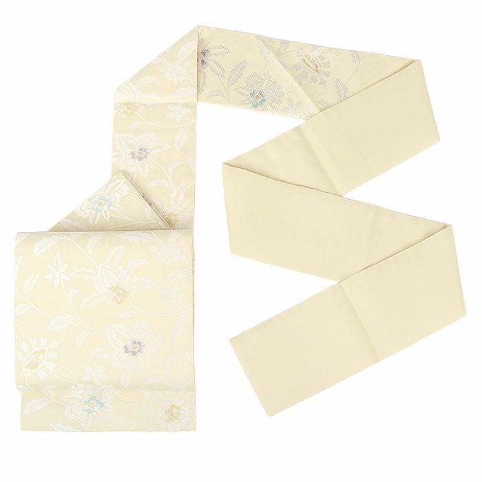 《お仕立て上り》【最短日お届け】小紋 紬 色無地 御召 などのお着物に 名古屋帯 薄黄 更紗 花唐草 西陣織 弥栄織物 九寸 仕立て上がり 絹 未使用 新品 春 秋 冬 おび なごや帯 小紋 紬 色無地 御召