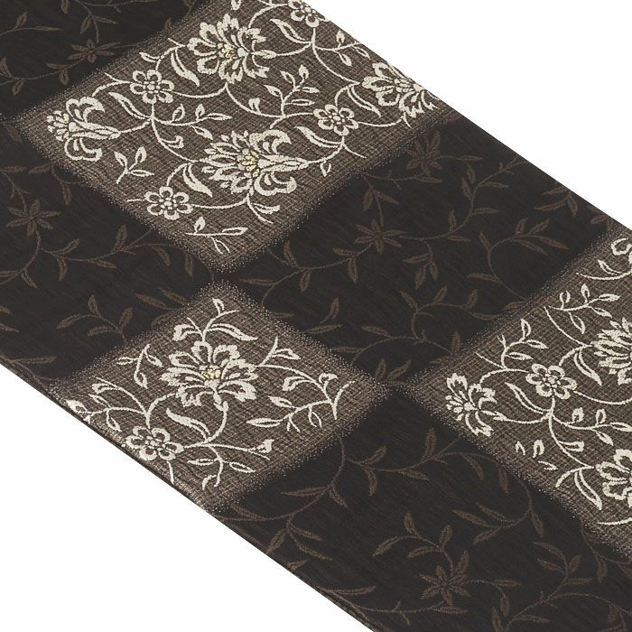 《お仕立て上り》【最短日お届け】小紋 紬 色無地 御召 などのお着物に 名古屋帯 こげ茶 黒 変わり市松 花唐草 西陣織 弥栄織物 九寸 仕立て上がり 絹 未使用 新品 春 秋 冬 おび なごや帯 小紋 紬 色無地 御召