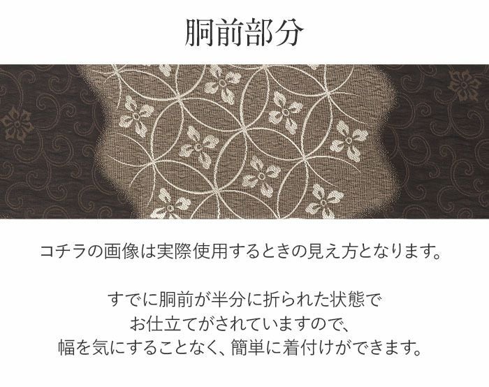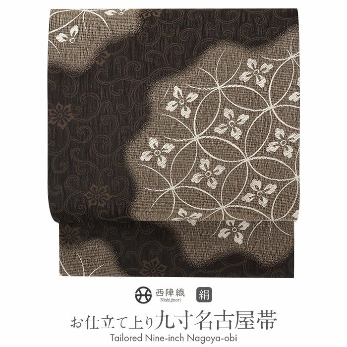 《お仕立て上り》【最短日お届け】小紋 紬 色無地 御召 などのお着物に 名古屋帯 こげ茶 黒 花七宝 花唐草 西陣織 弥栄織物 九寸 仕立て上がり 絹 未使用 新品 春 秋 冬 おび なごや帯 小紋 紬 色無地 御召