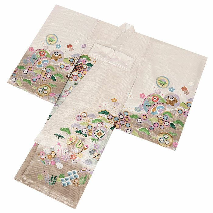 男の子 赤ちゃんのお宮参りの着物 産着 お宮参り 着物 男の子 絹 正絹 掛け着 産着 祝い着 モダン 薄茶 茶 兜 小槌 三つ矢 松竹梅 宝尽くし 吉祥紋 友禅 京友禅 刺繍 金彩 暈し ぼかし 新品 日本製