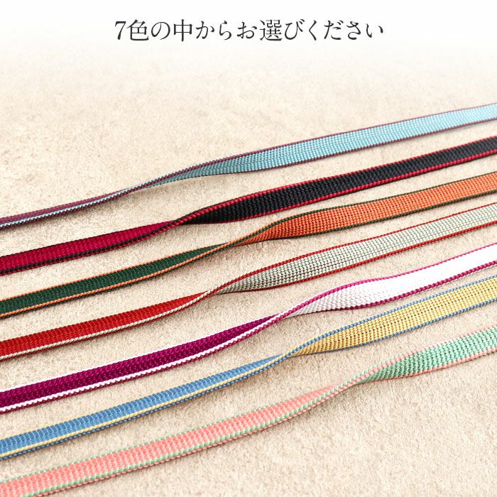 帯留と合わせて帯元を華やかに引き立てる 帯締め 三分紐 三部紐 赤 紅 金茶 抹茶 黒 青 瑠璃 紫 ベージュ 灰 ラベンダー 全10色 普段用 日本製 正絹 うれしづくし