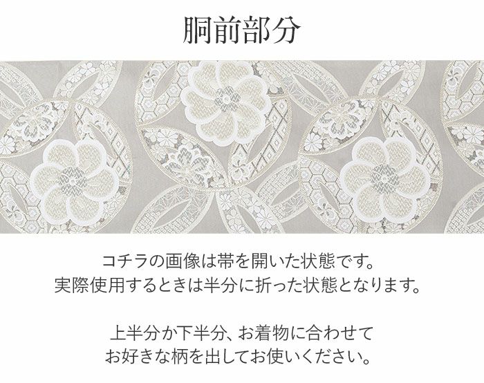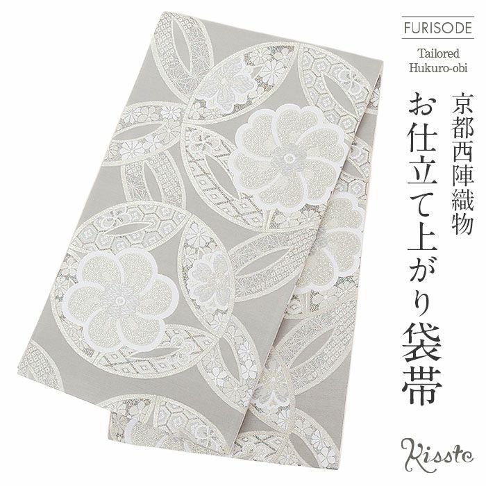 《お仕立て上り》【最短日お届け】振袖などのフォーマルなお着物に 振袖 帯 袋帯 成人式 グレー シルバー 七宝 ねじり梅 廣部織物 仕立て上がり 新品 灰 銀