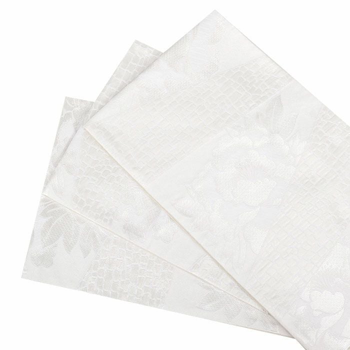 《お仕立て上り》【最短日お届け】振袖などのフォーマルなお着物に 振袖 帯 袋帯 成人式 ホワイト シルバー エンボス 幾何学 廣部織物 仕立て上がり 新品 白 銀