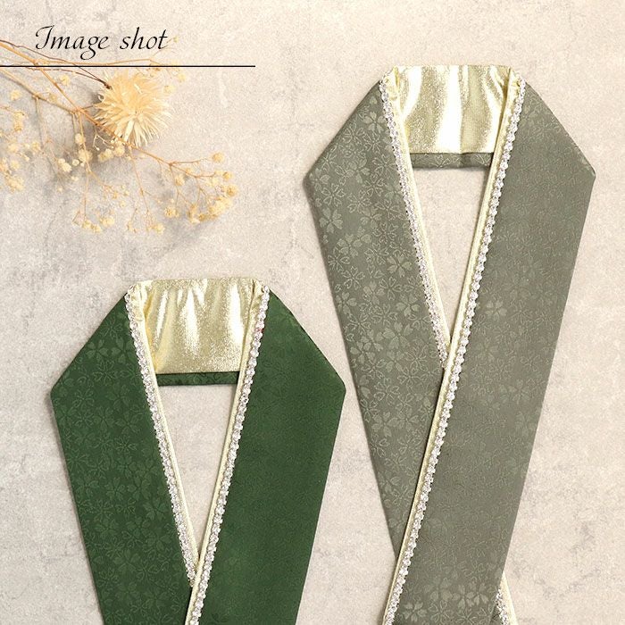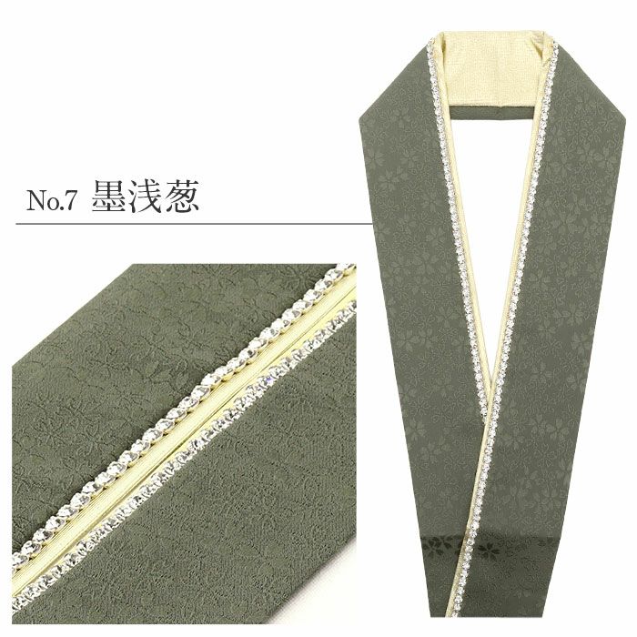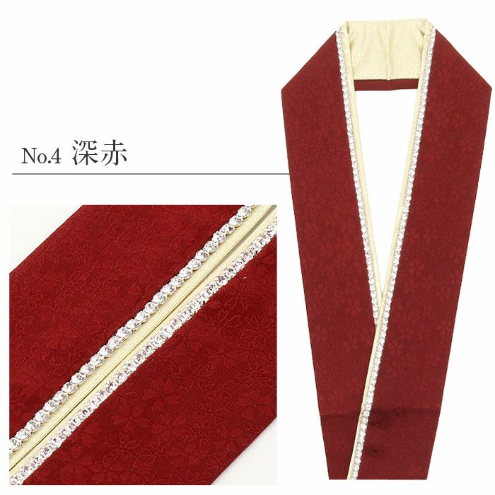 成人式や結婚式の華やかな振袖や卒業袴に 重ね衿 成人式 振袖用 焦茶 紺 緑 赤 黄 黄淡 灰 白 黒 全10色 日本製 正絹 ラインストーン 金 ゴールドライン リバーシブル メール便対応可