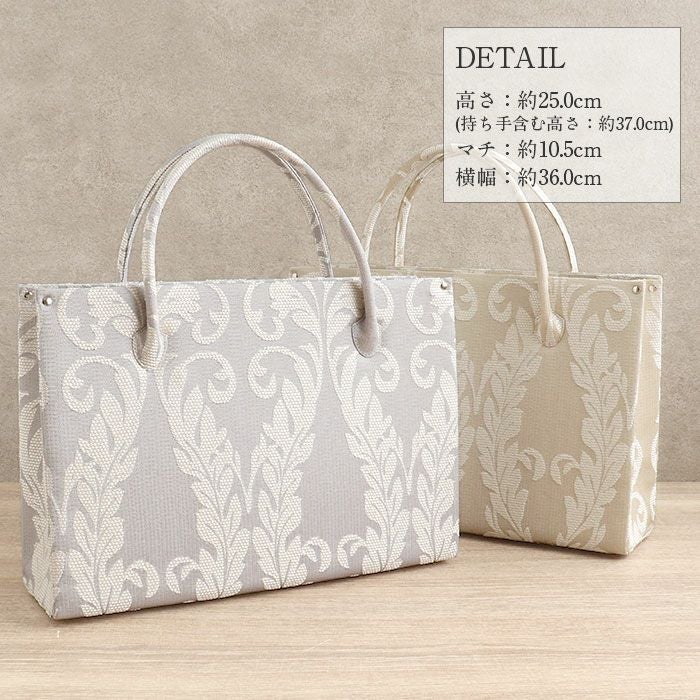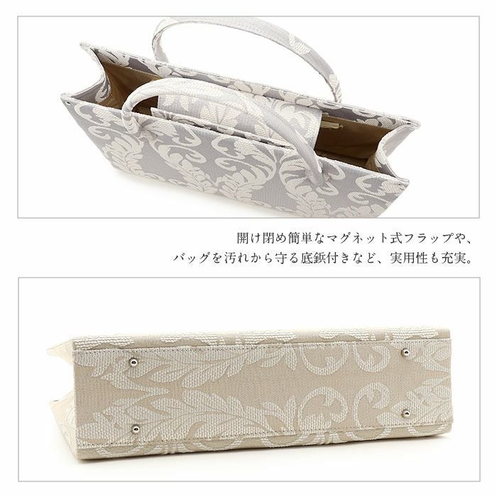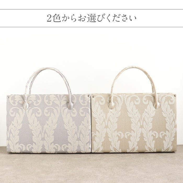 白梅ブランドのおしゃれなカジュアルバッグ バッグ お洒落バッグ 普段着用 カジュアル用 バッグ シルバーグレー ゴールドベージュ ダマスク リーフ ボタニカル 全2色 日本製