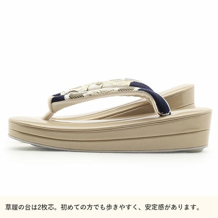 痛くなく歩きやすい、初めての方にも安心の履き心地 成人式 振袖 草履バッグセット 草履 バッグ フリー L ネイビー ホワイト 紺 白 薄金 梅 菊 華紋 振袖用帯地 エナメル 2枚芯 日本製
