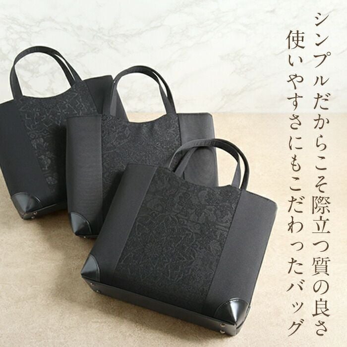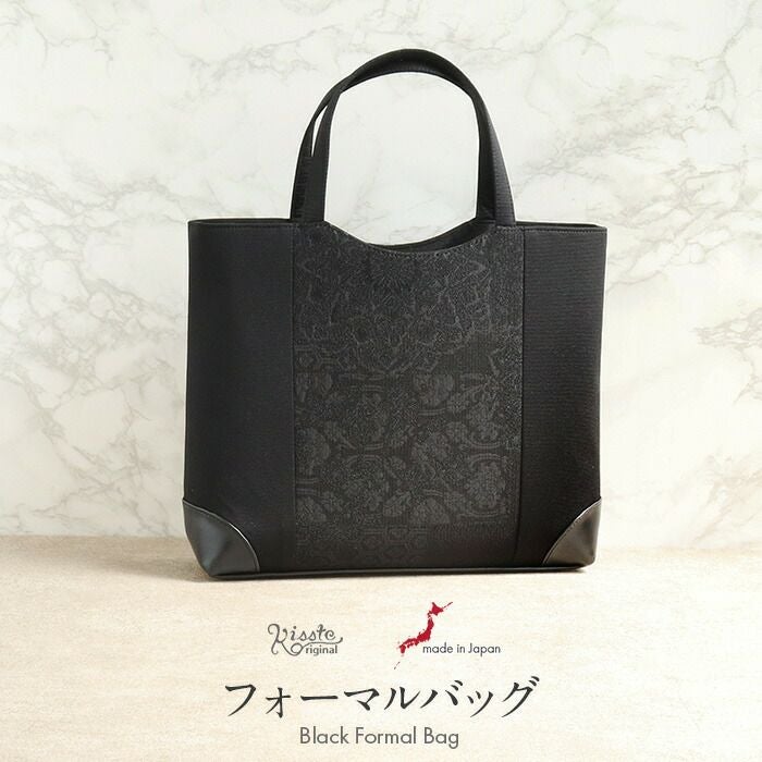 正絹黒共帯の気品ある キステオリジナル のバッグ バッグ ブラックフォーマル 葬儀 葬式 お葬式 告別式 弔事 喪服 Kissteオリジナル 正絹 シルク 黒共帯 花文 花唐草 日本製