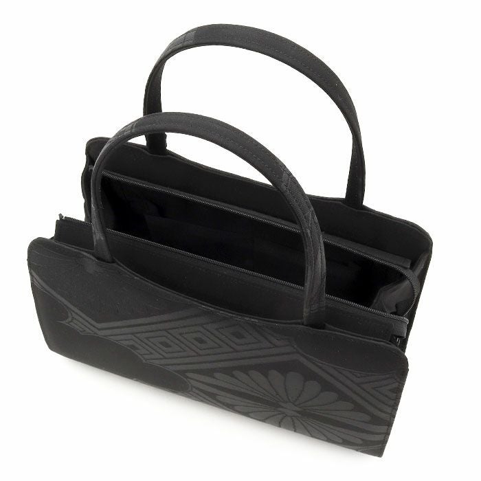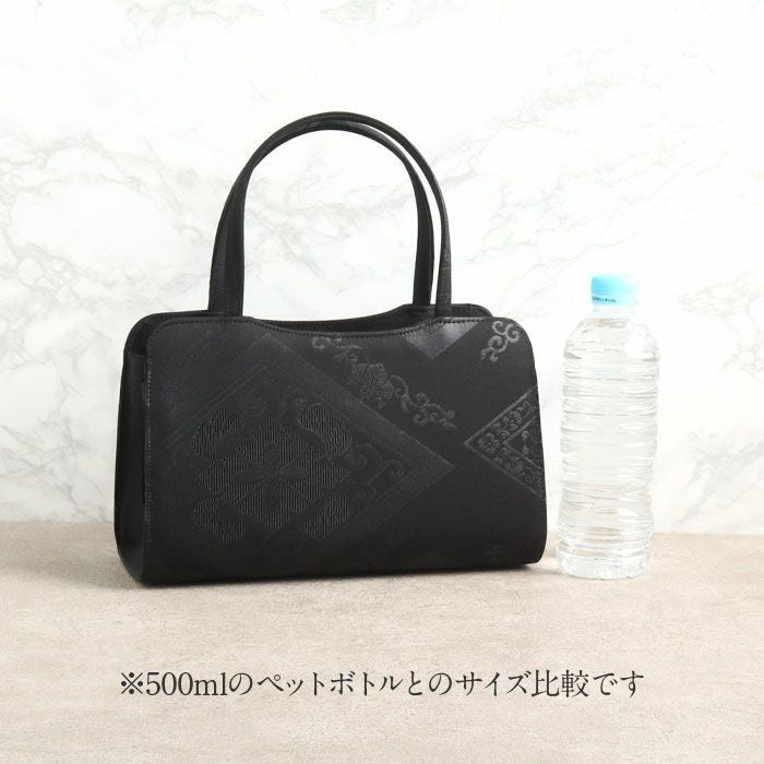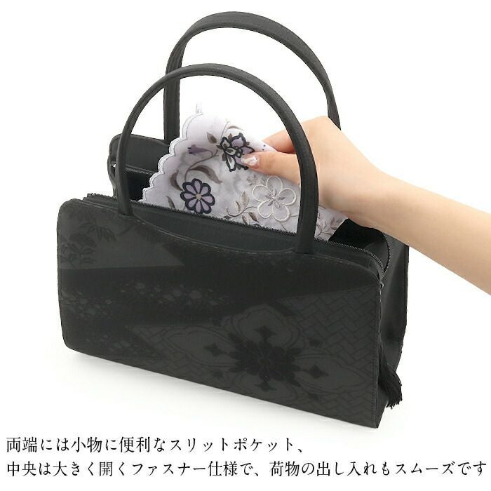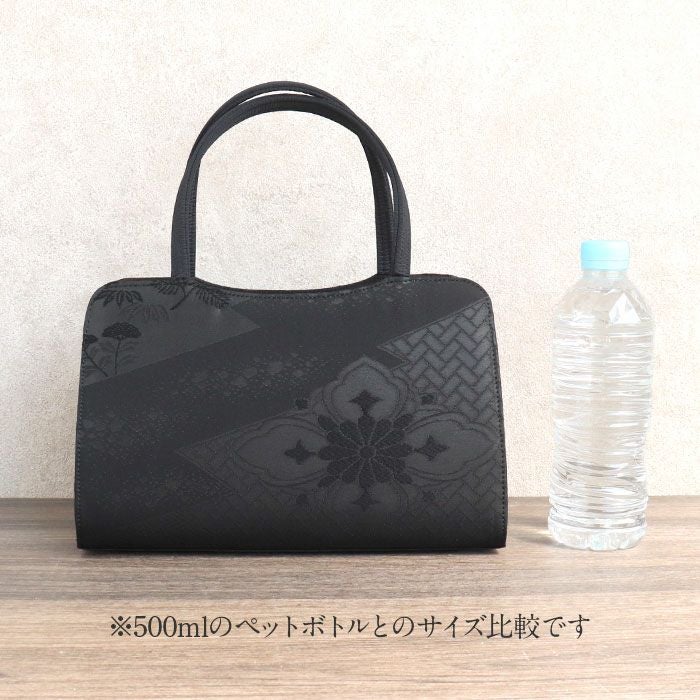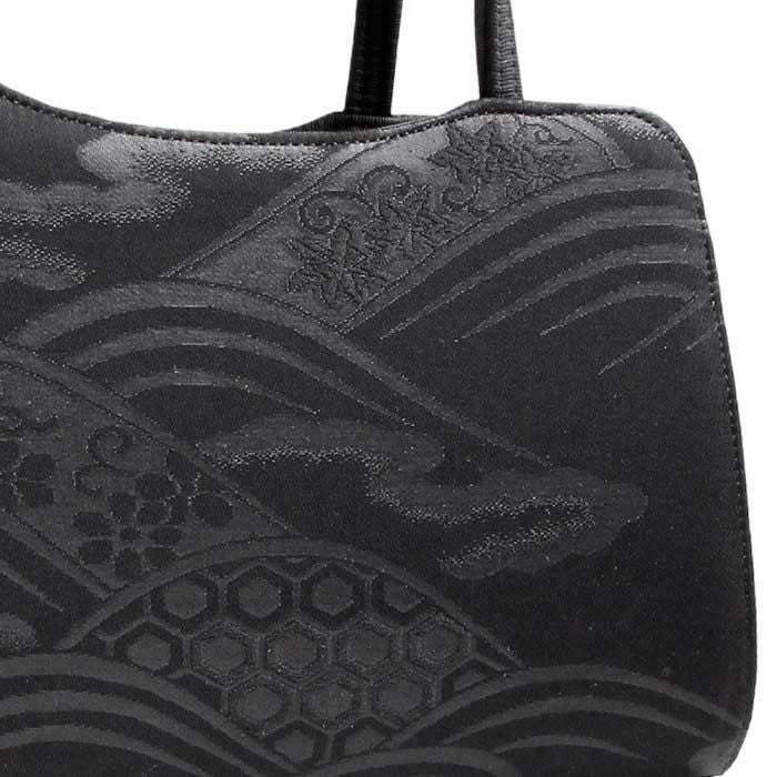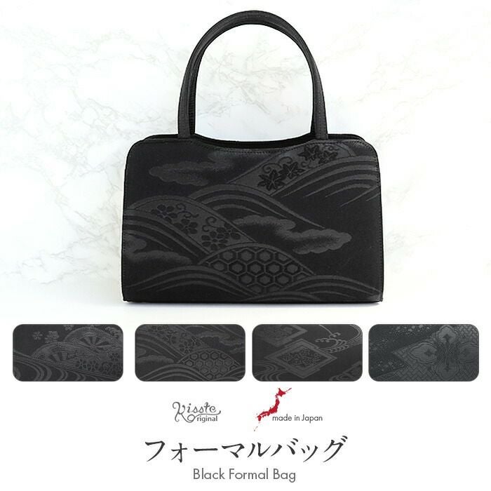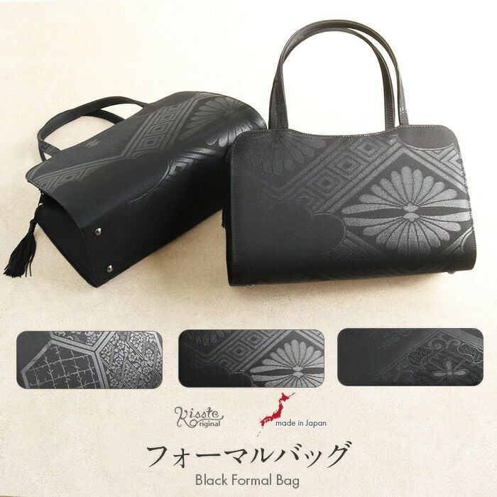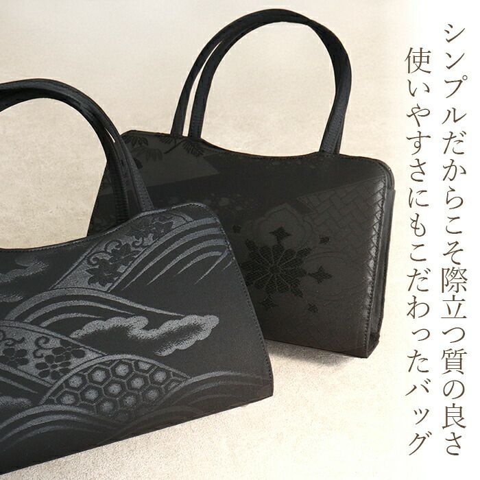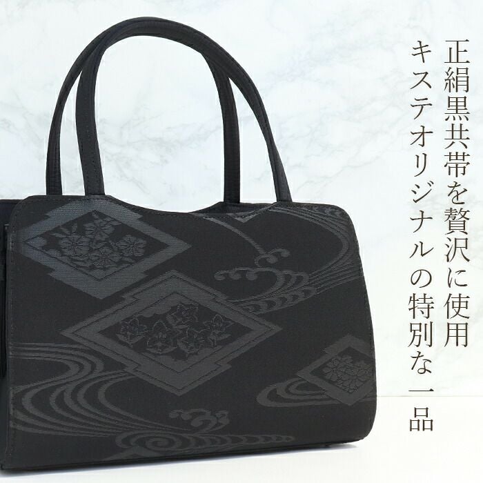 正絹黒共帯の気品ある キステオリジナル のバッグ バッグ ブラックフォーマル 葬儀 葬式 お葬式 告別式 弔事 喪服 Kissteオリジナル 正絹 シルク 黒共帯 全4柄 流水 菊 花四つ菱 露芝 花菊 日本製