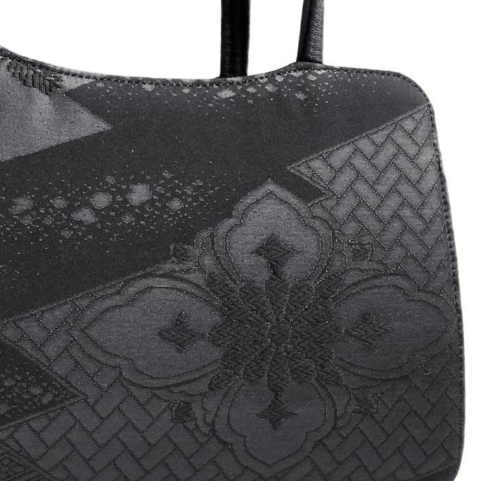 正絹黒共帯の気品ある キステオリジナル のバッグ バッグ ブラックフォーマル 利休バッグ 葬儀 葬式 お葬式 告別式 弔事 喪服 Kissteオリジナル 正絹 シルク 黒共帯 菱 亀甲 日本製