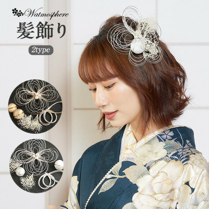 髪飾り 成人式 振袖 袴 かすみ草 パール 白 金 白 全3タイプ 髪飾り 成人式 振袖 袴 七五三 Watmosphe 7歳 七歳 花飾り 水引 かすみ草 チュール パール 白 金 白 全3タイプ かみかざり ヘアアクセ 成人式 卒業式