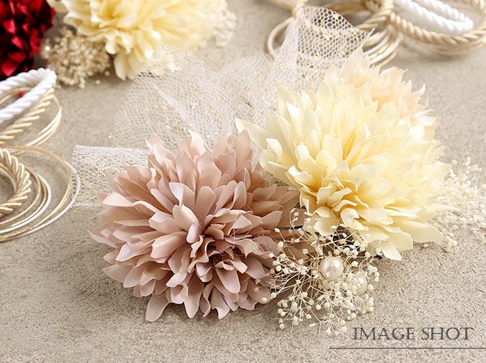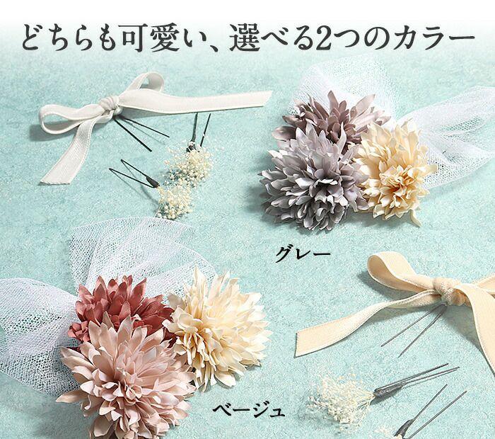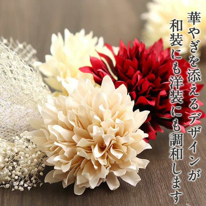 成人式や結婚式の華やかな振袖や卒業袴に 髪飾り 成人式 振袖用 成人用 Watmosphere レッド ピンクベージュ くすみカラー 花 フラワー 水引 パール かすみ草 日本製