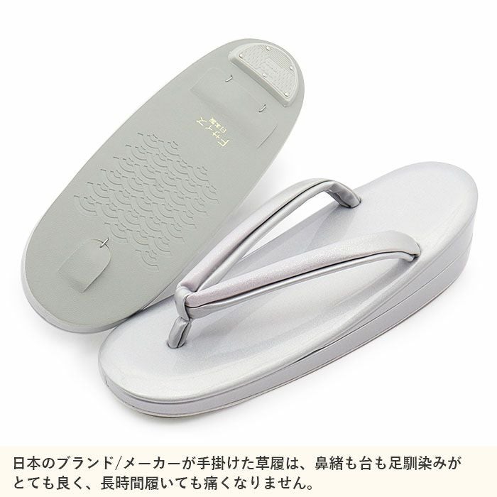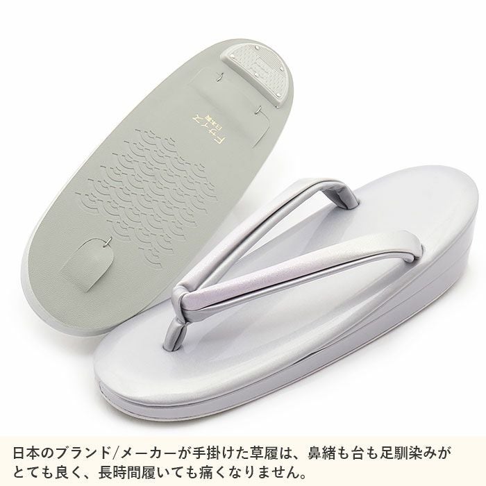 ≪在庫限り≫ 小紋 紬 色無地 御召 ウール 木綿 など カジュアルきものに 草履 普段用 カジュアル草履 L ホワイト 白 藤色 薄紫 献上柄 博多織 絹 エナメル 1枚芯 日本製 痛くない 歩きやすい 女性 女性用