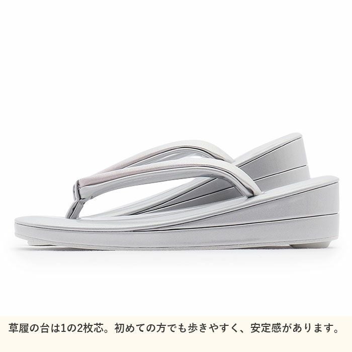 ≪在庫限り≫ 結婚式の黒留袖 色留袖や訪問着に 草履 留袖用 訪問着用 レディース 紗織 沙織 L シルバー 幾何学 合皮 3枚芯 かかと高め 日本製 黒留袖 色留袖 礼装用 フォーマル 結婚式