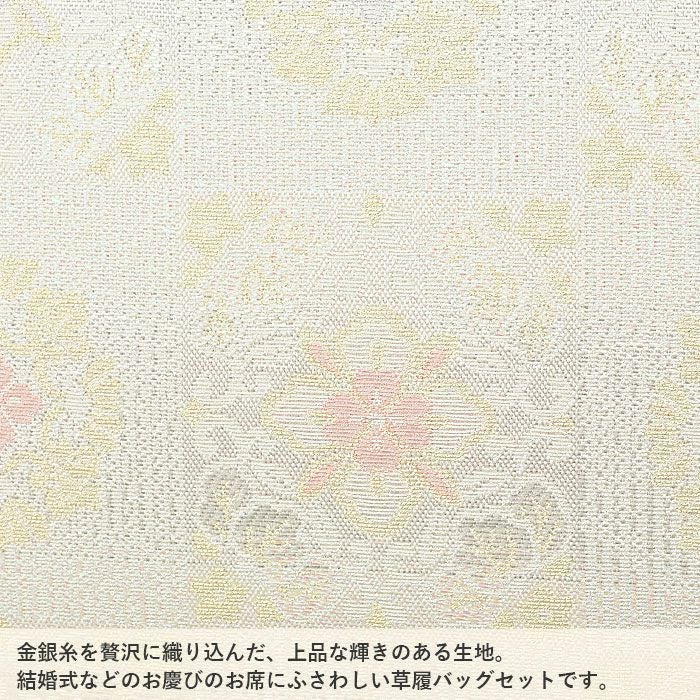 ≪在庫限り≫ 結婚式の黒留袖 色留袖や訪問着に 草履バッグセット 留袖用 訪問着用 草履バッグ 世美庵 L ゴールド ピンク 白 花菱 花文 帯地 3枚芯 優花緒 日本製