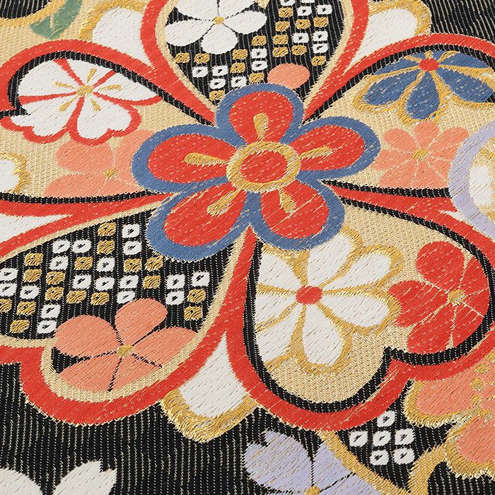すぐ使えるお仕立上り 振袖 などの フォーマル なお着物に 振袖 帯 袋帯 成人式 <ブラック/鹿の子雪輪に華紋> 西陣織 <浅田叡一織物> 仕立て上がり 黒