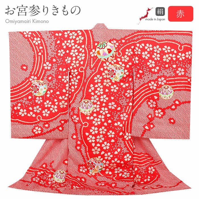≪在庫限り≫ お宮参り 女の子 着物 産着 服装 赤ちゃん 祝い着 お宮参り 着物 女の子 産着 祝い着 白 赤 鞠 万寿菊 桜 梅 吉祥花 正絹 友禅 刺繍 日本製 新品 販売 購入