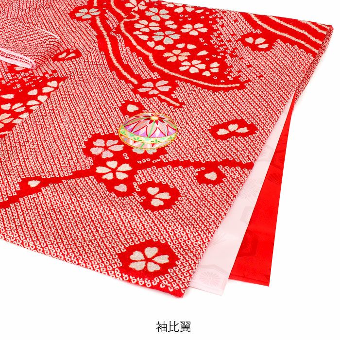 祝い着にふさわしい美しい正絹友禅 お宮参り 着物 女の子 産着 祝い着 赤 白 御所車 小槌 琵琶 梅 桜 疋田 鹿の子 吉祥紋 正絹 友禅 本絞り 絞り 金駒刺繍 刺繍 新品 日本製
