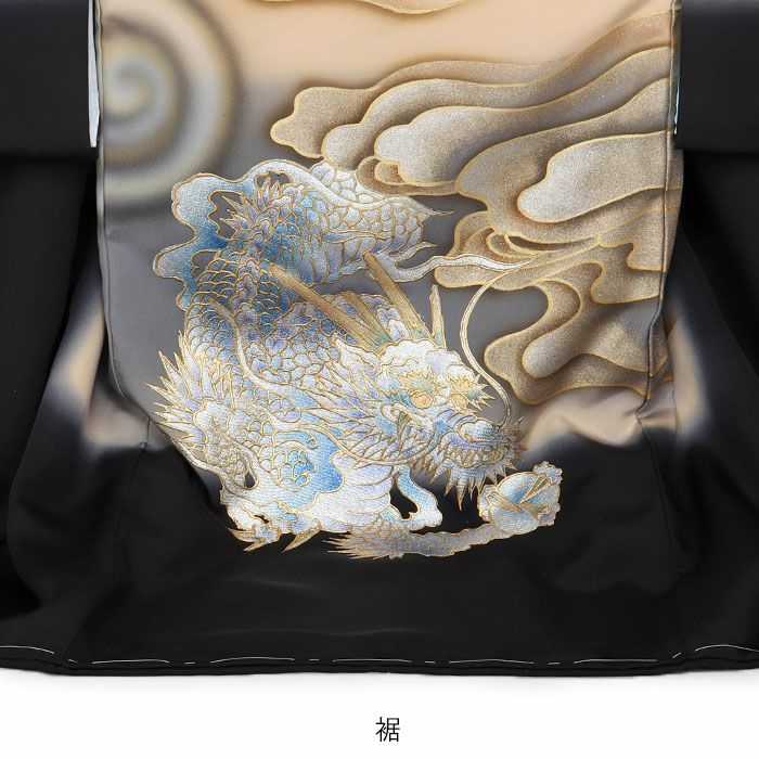 ≪在庫限り≫ 男の子 赤ちゃんのお宮参りの着物 産着 お宮参り 着物 男の子 産着 祝い着 黒 金 銀 白竜 龍 辰 白虎 雲流 正絹 友禅 金刺繍 金彩 日本製 新品