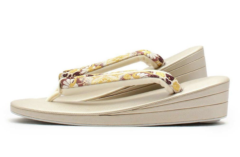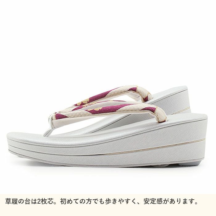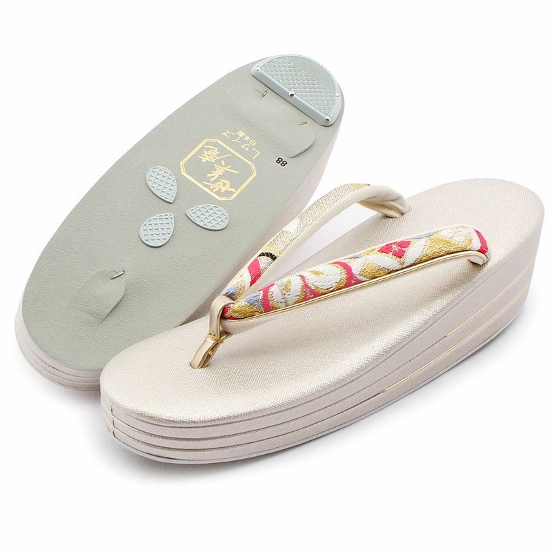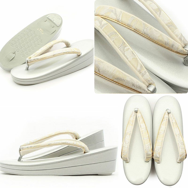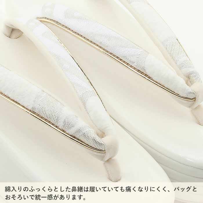 痛くなく歩きやすい、初めての方にも安心の履き心地 振袖 草履バッグセット 成人式 草履バッグセット 振袖用 紗織 Sサイズ 小さい 白 金 西陣織 正絹帯地 花菱 1の3枚芯 日本製 パールトーン加工