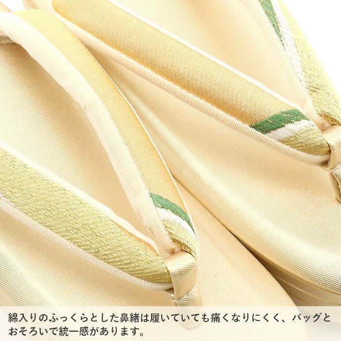 痛くなくて歩きやすい、初めての方にも安心の履き心地 振袖 草履バッグセット 成人式 草履バッグセット 振袖用 Sサイズ 小さい 緑 クリーム 金 花紋 帯地 エナメル 4枚芯 ハイヒール 厚底 日本製