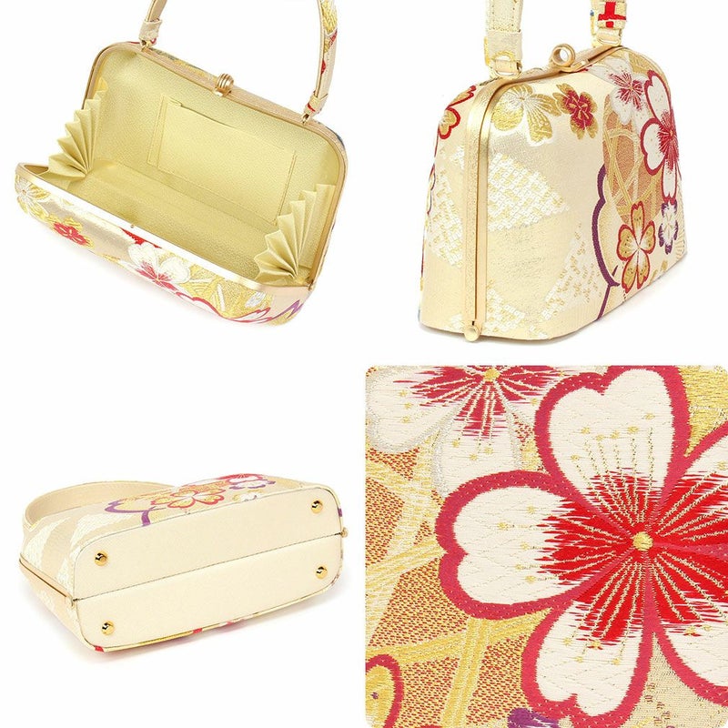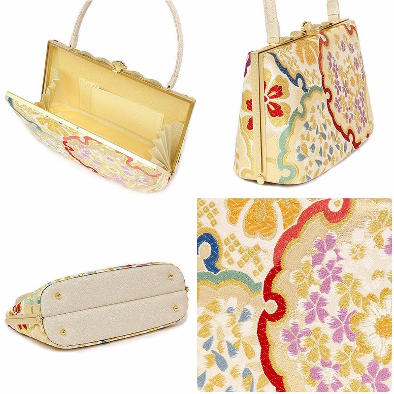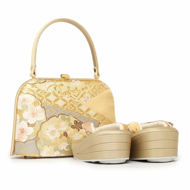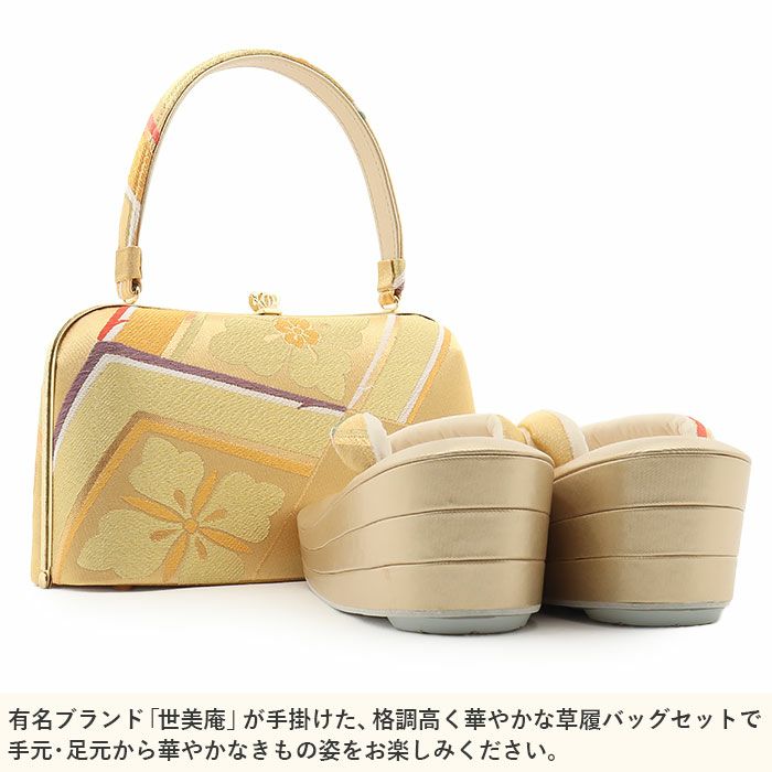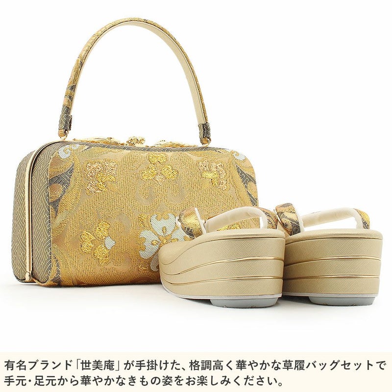 草履バッグセット 礼装用 <世美庵> Lサイズ 正絹袋帯地 <ゴールド/桜と辻ヶ花> 日本製