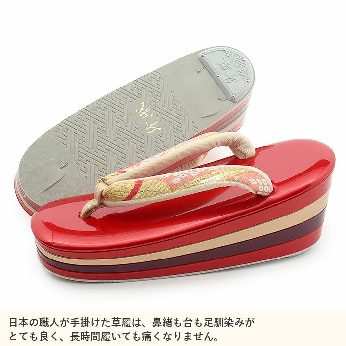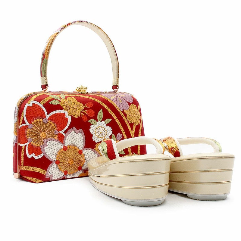 痛くなく歩きやすい、初めての方にも安心の履き心地 振袖 草履バッグセット 成人式 草履バッグセット 振袖用 岩佐謹製 フリー Lサイズ レッド 赤 ゴールド 華紋 桜 西陣織 帯地 合皮 3枚芯 日本製