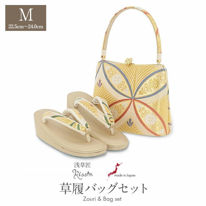草履バッグセット 留袖用 訪問着用 <キステオリジナル 浅草匠> Mサイズ 日本製 <ゴールド/七宝に唐花>