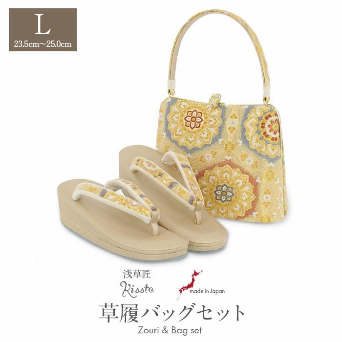草履バッグセット 礼装用 <浅草匠> Lサイズ サイズ <ゴールド系/七宝に唐花> 日本製