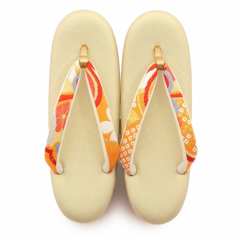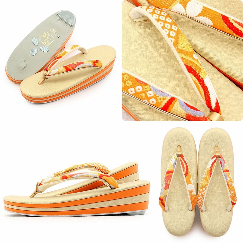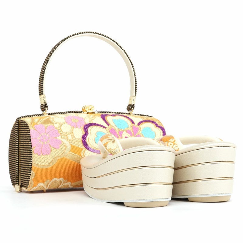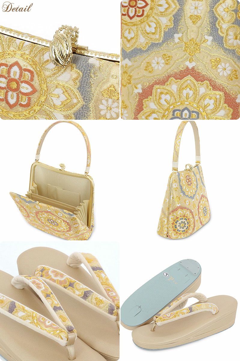 留袖用草履バッグセット 訪問着用 フリーサイズ Lサイズ 日本製 (かぶせタイプ)<オレンジゴールド/花七宝>