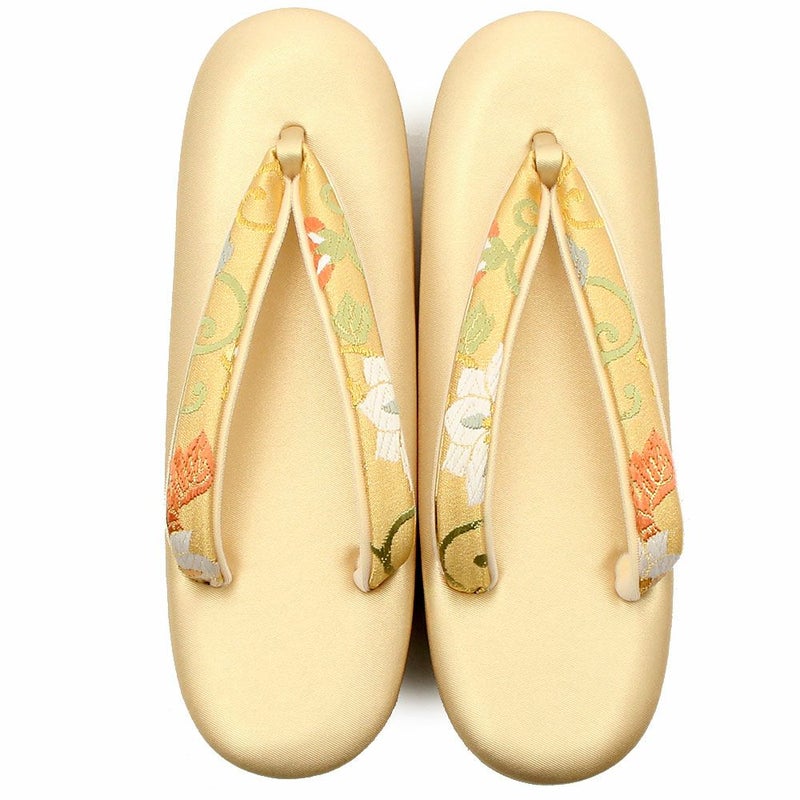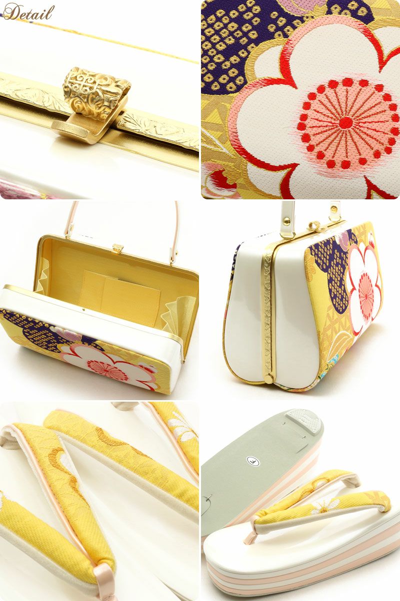 草履バッグセット 振袖用 フリーサイズ 正Lサイズ 絹帯地 <イエロー/梅> ハイヒール草履 4枚芯 日本製