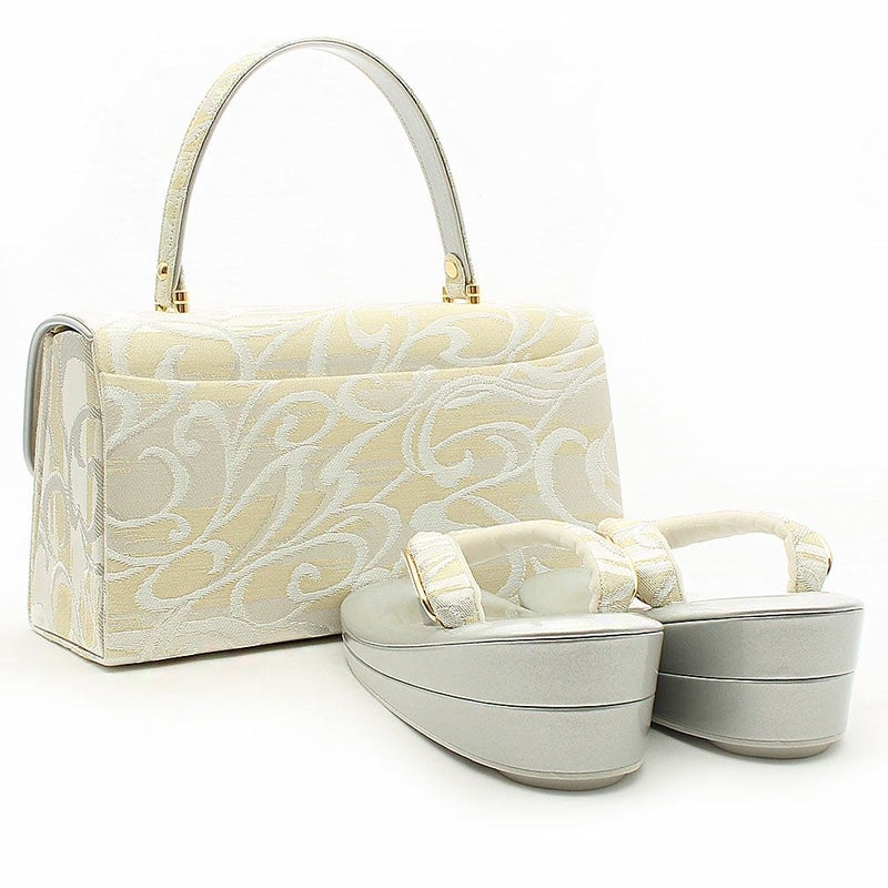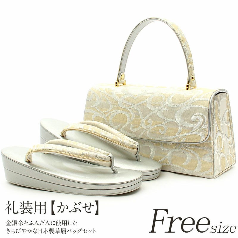 留袖用草履バッグセット 訪問着用 フリーサイズ Lサイズ 日本製 (かぶせタイプ)<シルバー・ゴールド/唐草>