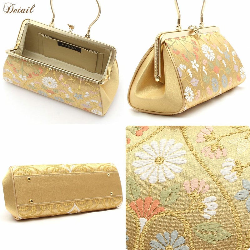 留袖用草履バッグセット 訪問着用 フリーサイズ Lサイズ 日本製 京都西陣 <ゴールド/花唐草>