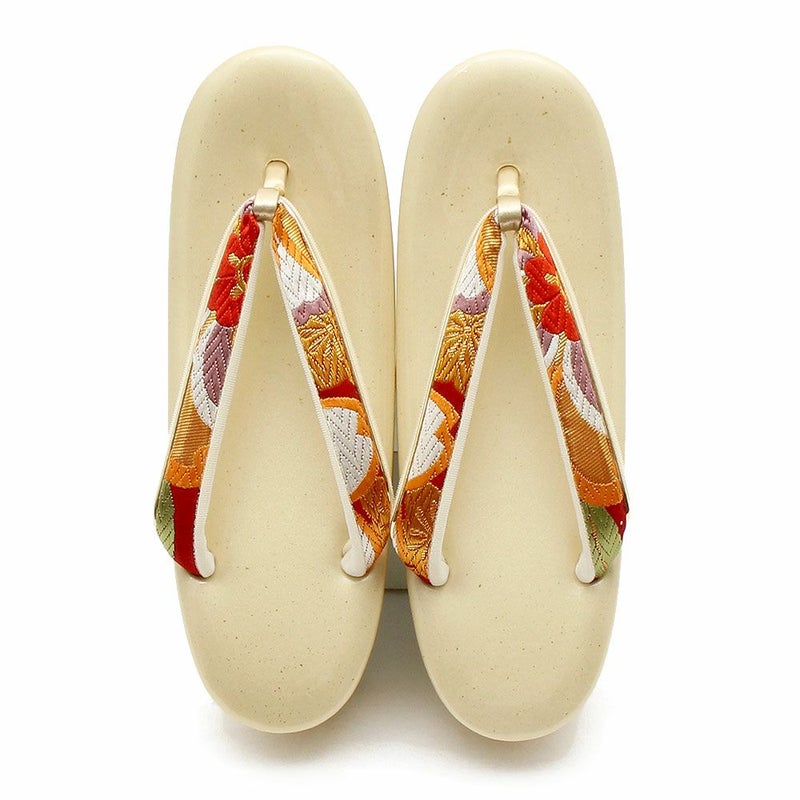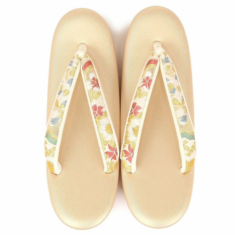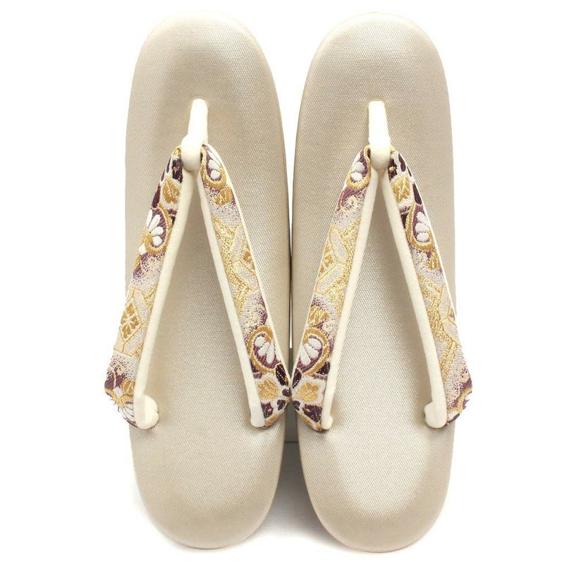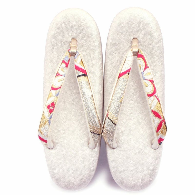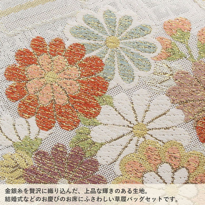 草履バッグセット 成人式 振袖用 フリーサイズ Lサイズ 日本製 帯地 <ホワイト・ゴールド/大菊>