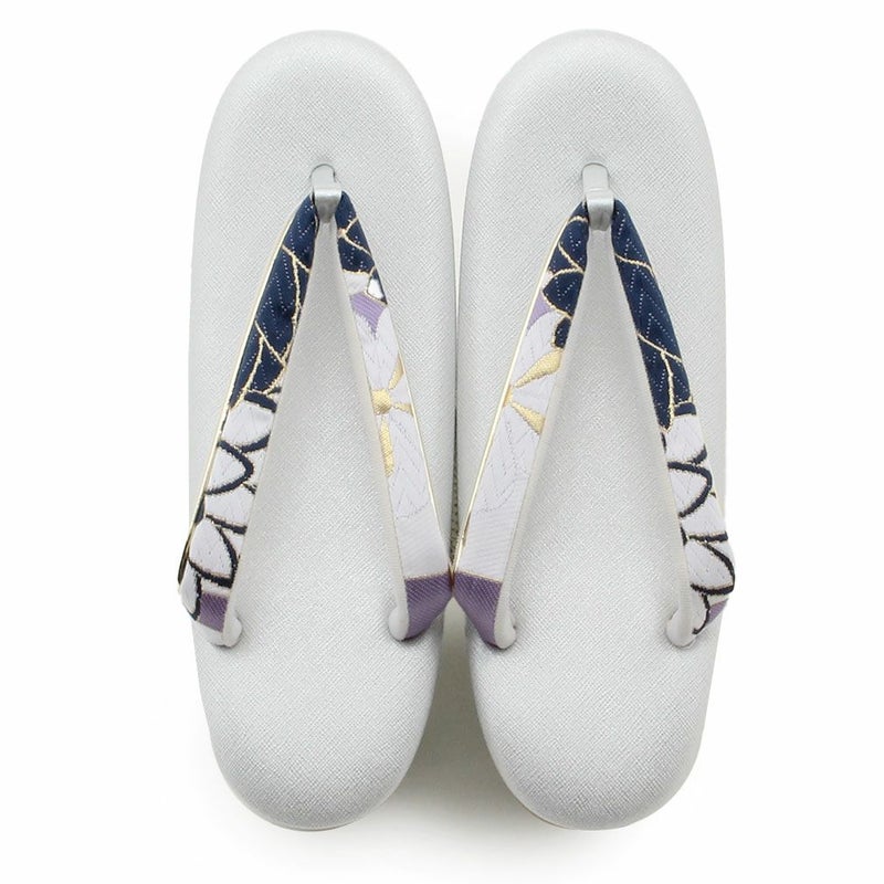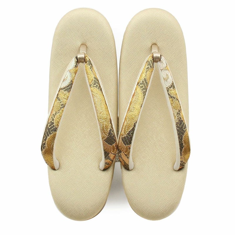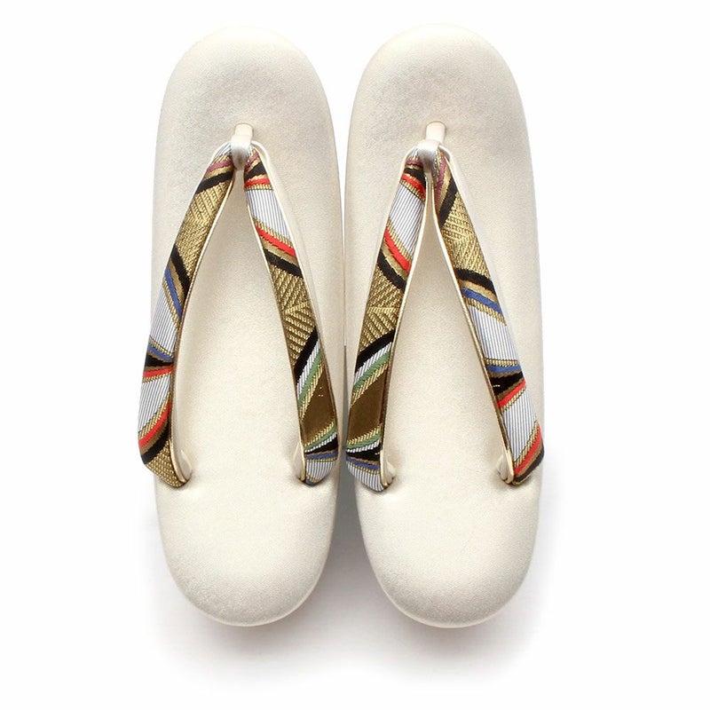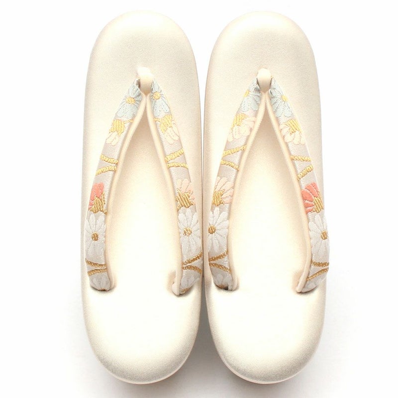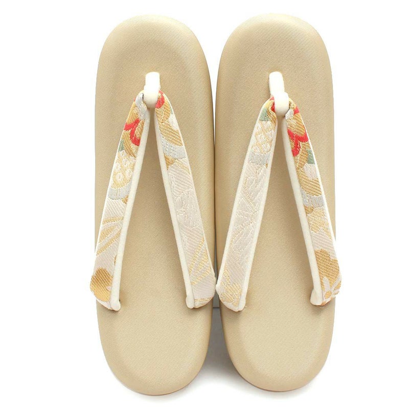 草履バッグセット 成人式 振袖用 フリーサイズ Lサイズ 日本製 帯地 <ホワイト・ゴールド/大菊>