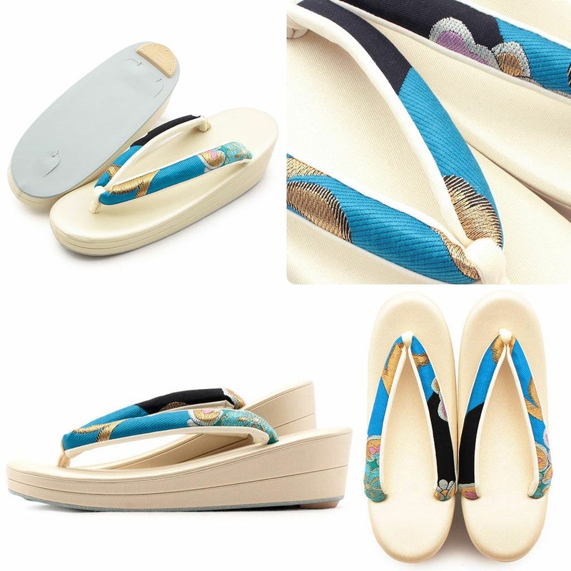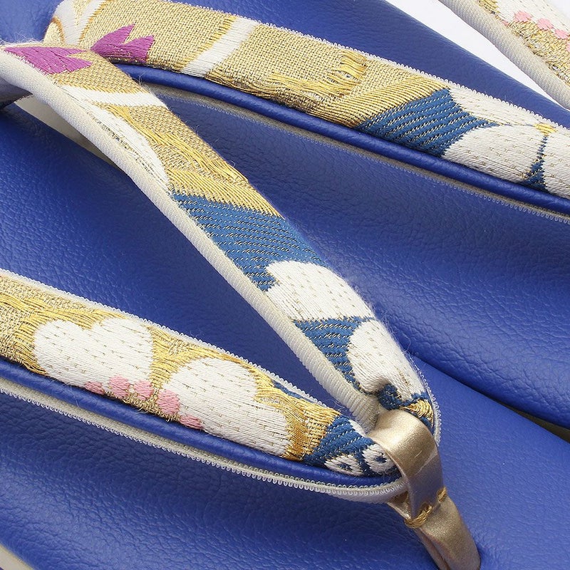 痛くなく歩きやすい、初めての方にも安心の履き心地 振袖 草履バッグセット 成人式 草履バッグセット 振袖用 Mサイズ ブルー ゴールド 青 金 花紋 松 七宝 振袖用帯地 エナメル 5枚芯 日本製