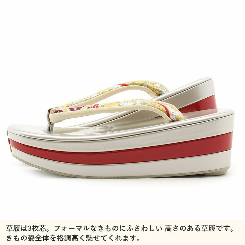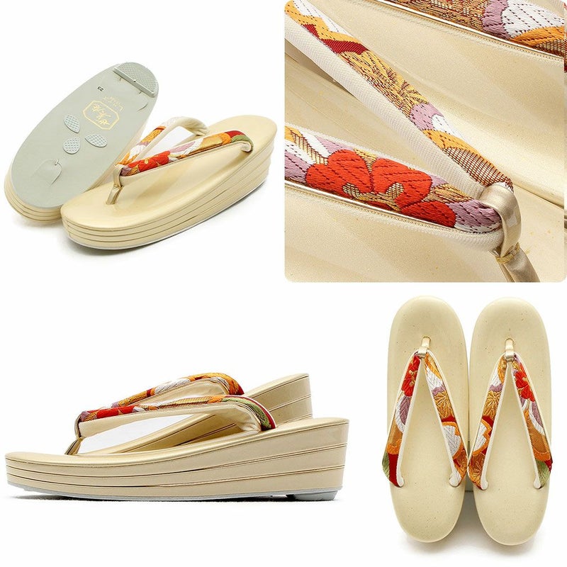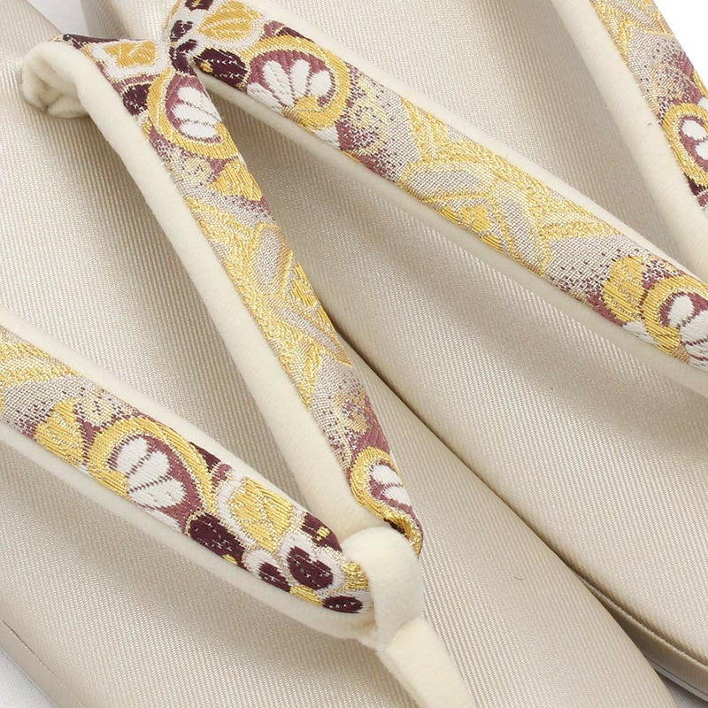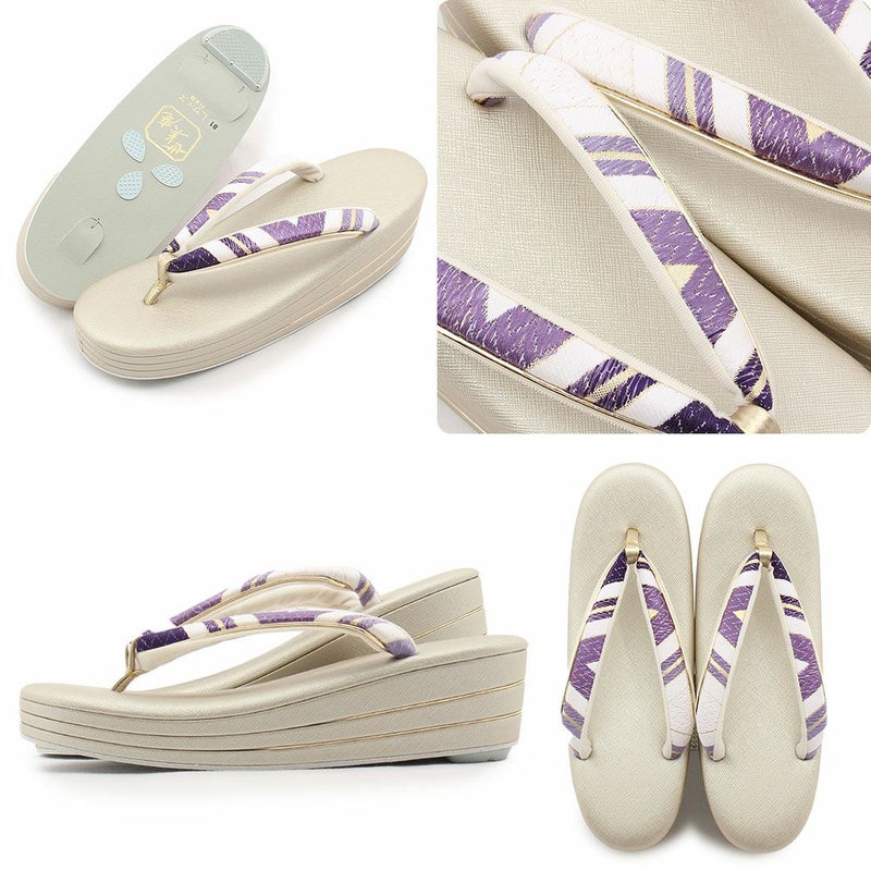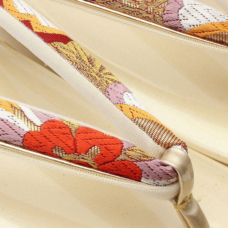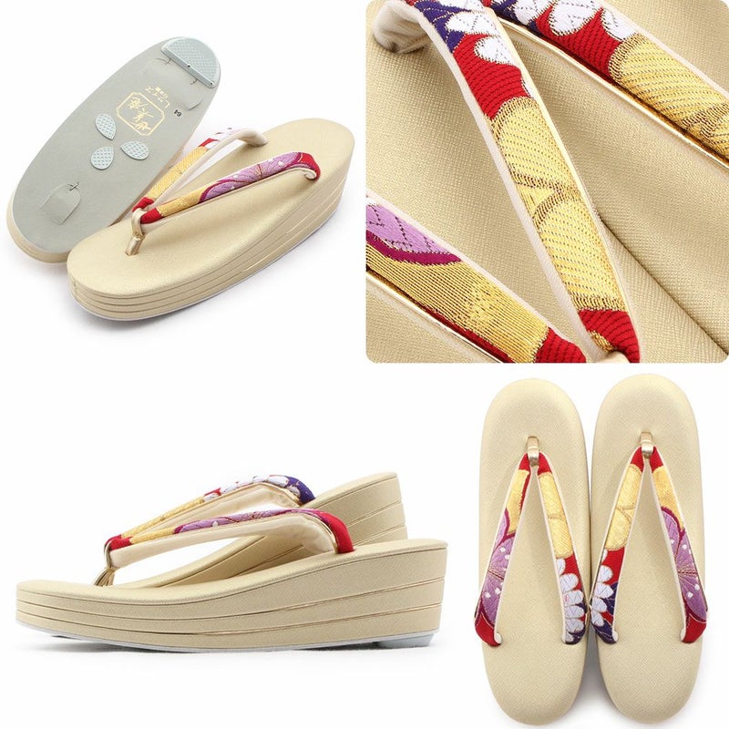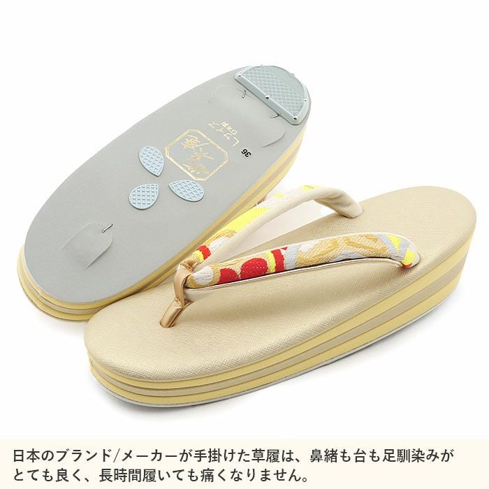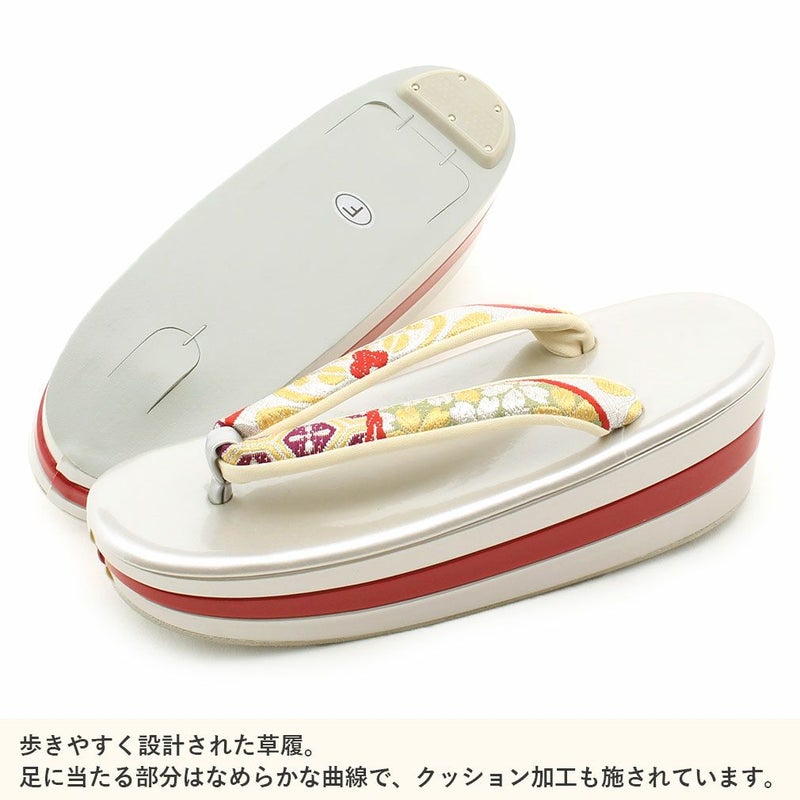 痛くなくて歩きやすい、初めての方にも安心の履き心地 振袖 成人式 草履バッグセット 振袖用 振り袖 フリー Lサイズ クリーム ゴールド 金 赤 白 紫 七宝 七宝松葉 帯地 2枚芯 日本製