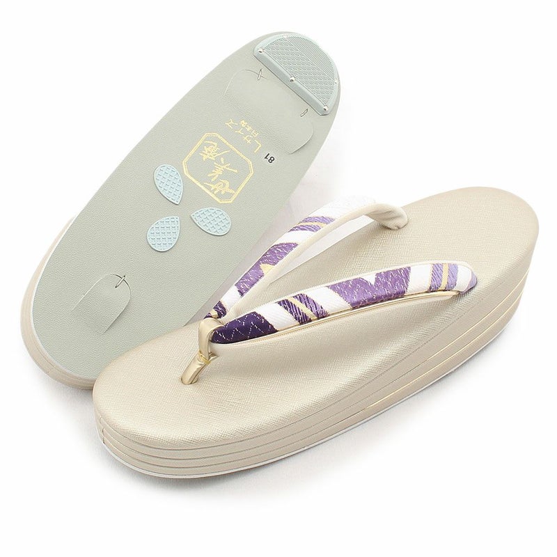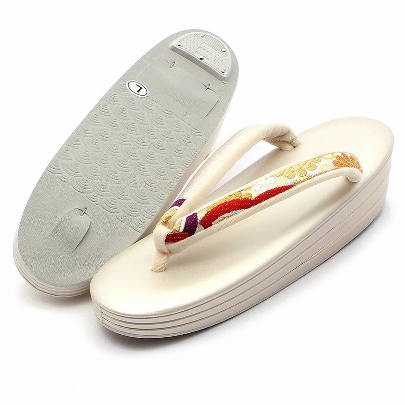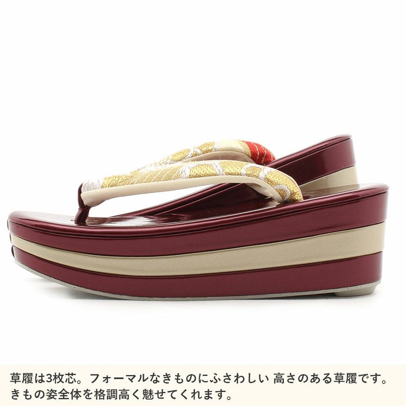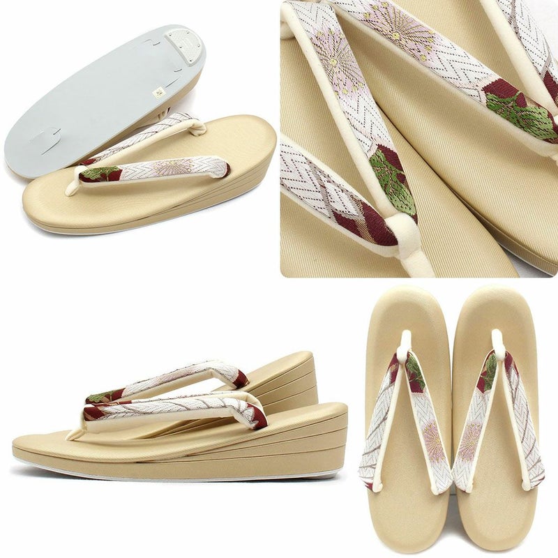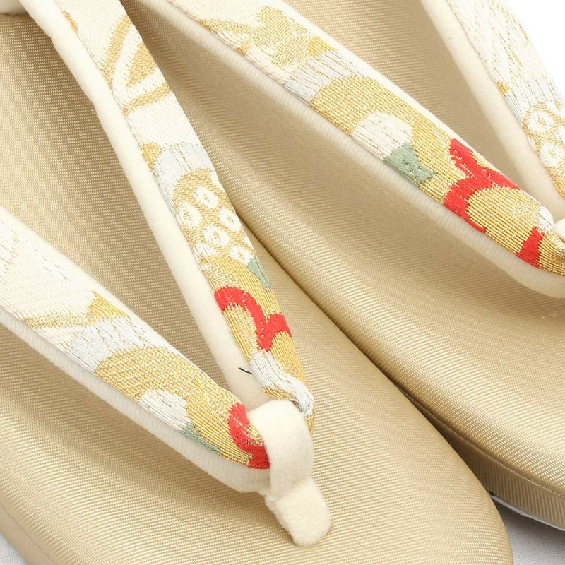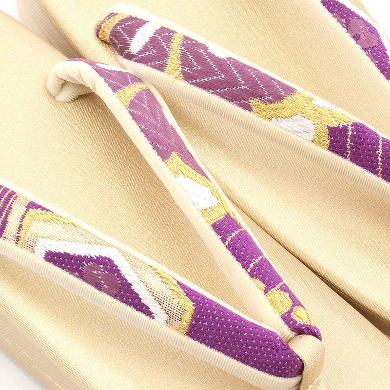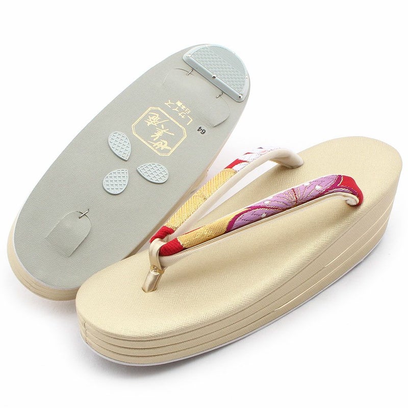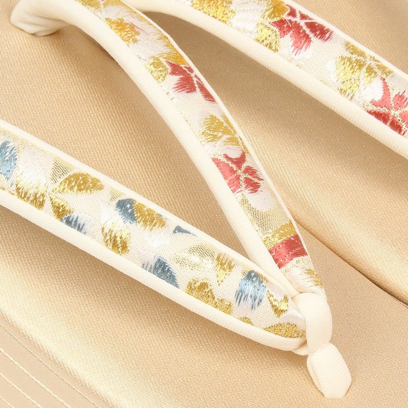 痛くなくて歩きやすい、初めての方にも安心の履き心地 振袖 成人式 草履バッグセット 振袖用 振り袖 フリー Lサイズ クリーム ゴールド 金 赤 白 紫 七宝 七宝松葉 帯地 2枚芯 日本製