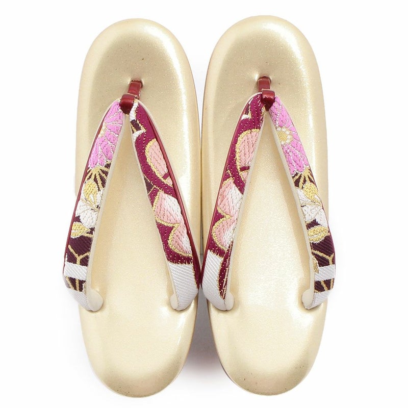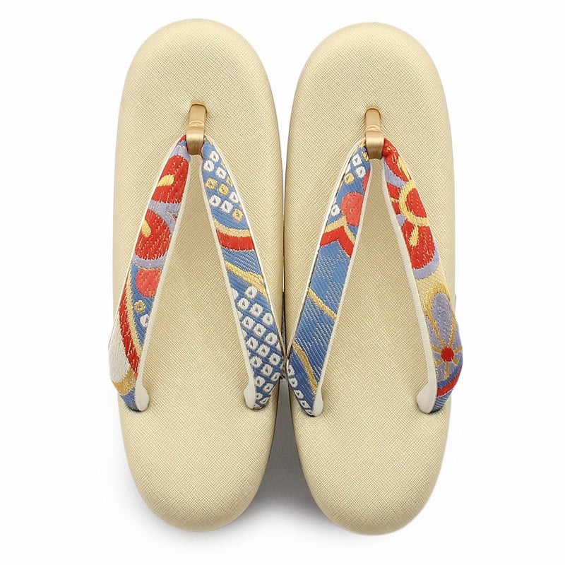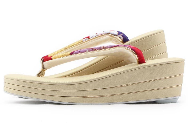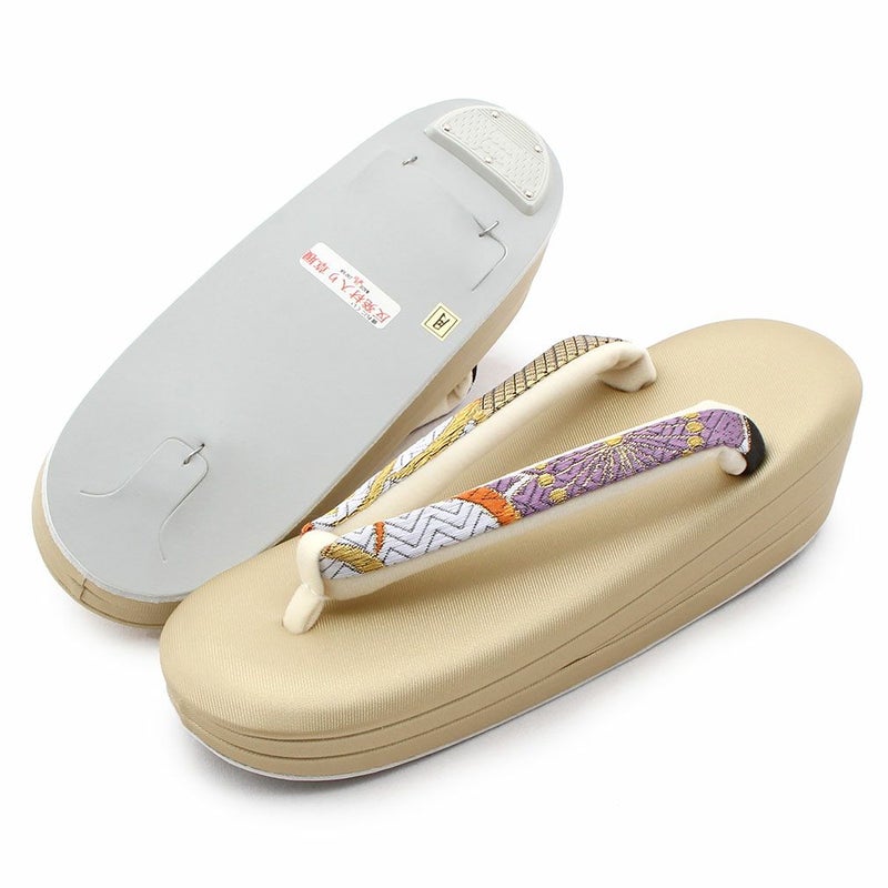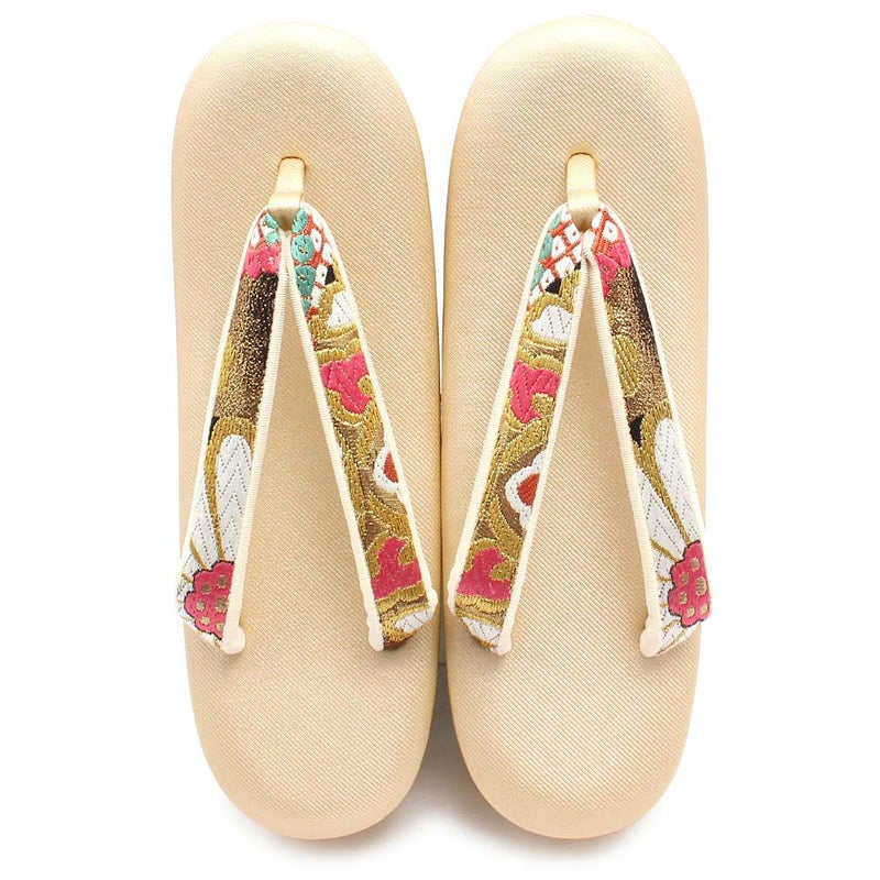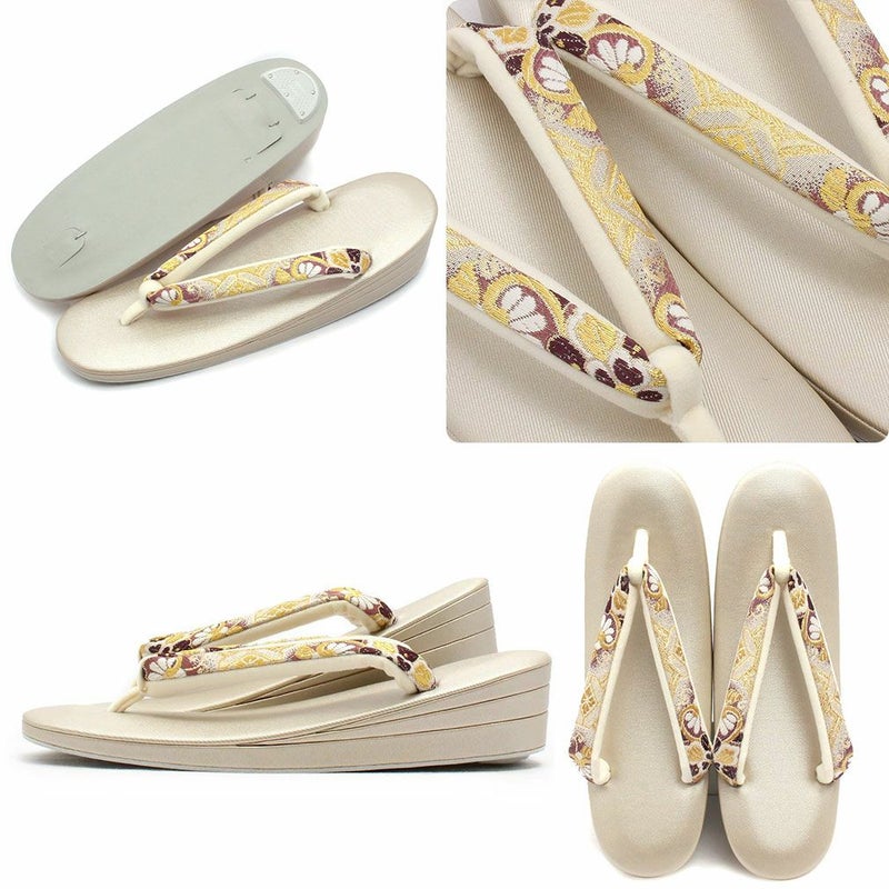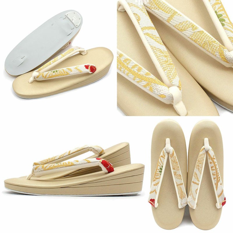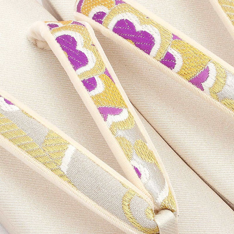 痛くなくて歩きやすい、初めての方にも安心の履き心地 振袖 成人式 草履バッグセット 振袖用 振り袖 フリー Lサイズ クリーム ゴールド 金 赤 白 紫 七宝 七宝松葉 帯地 2枚芯 日本製