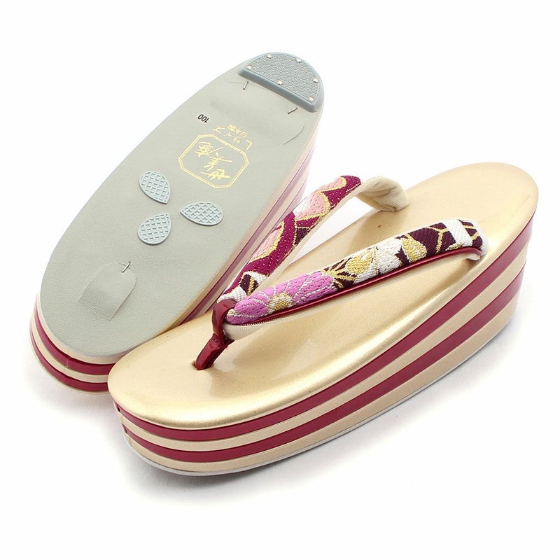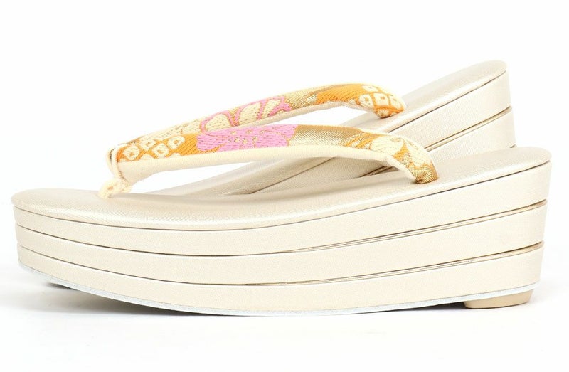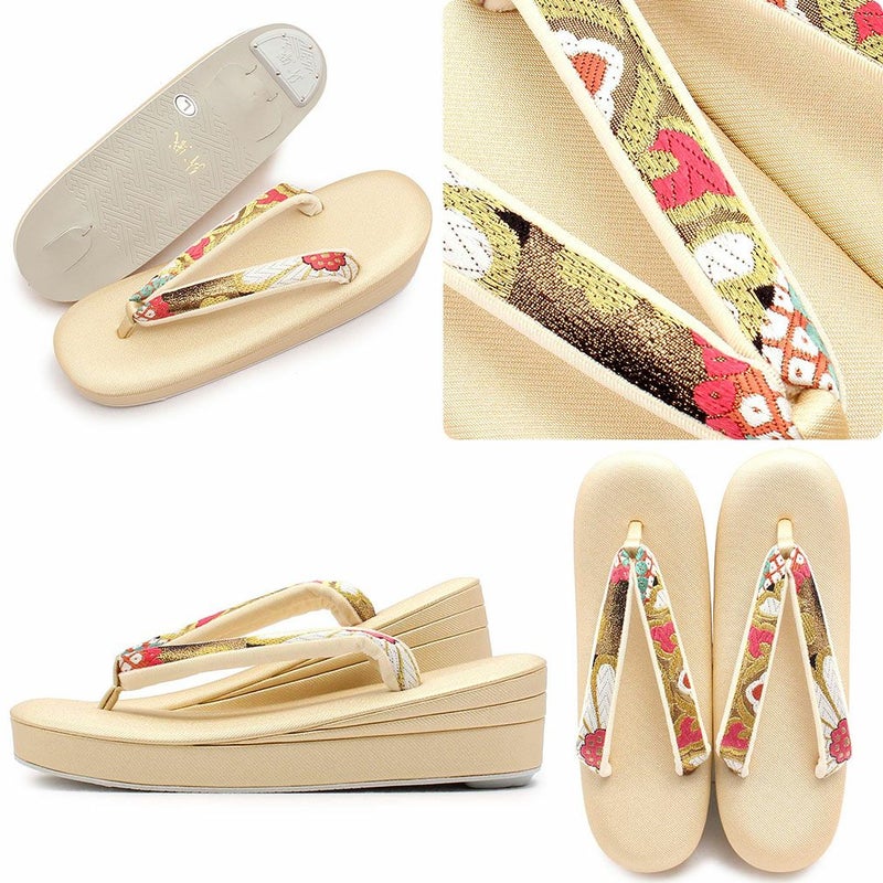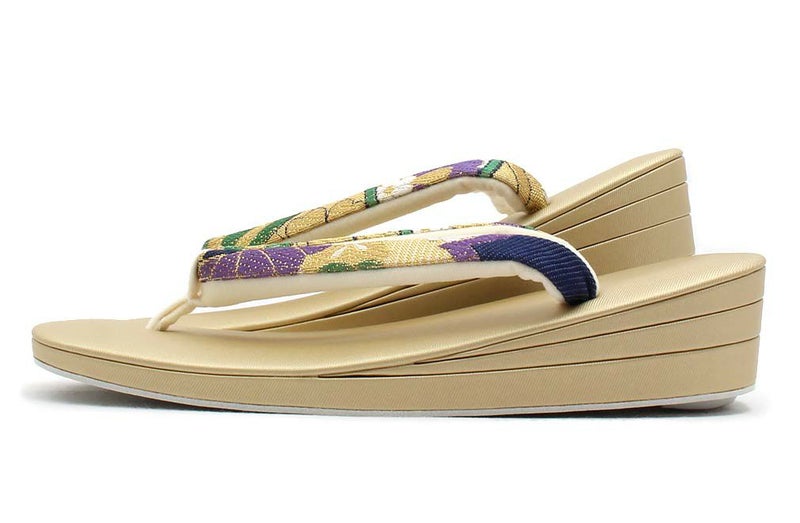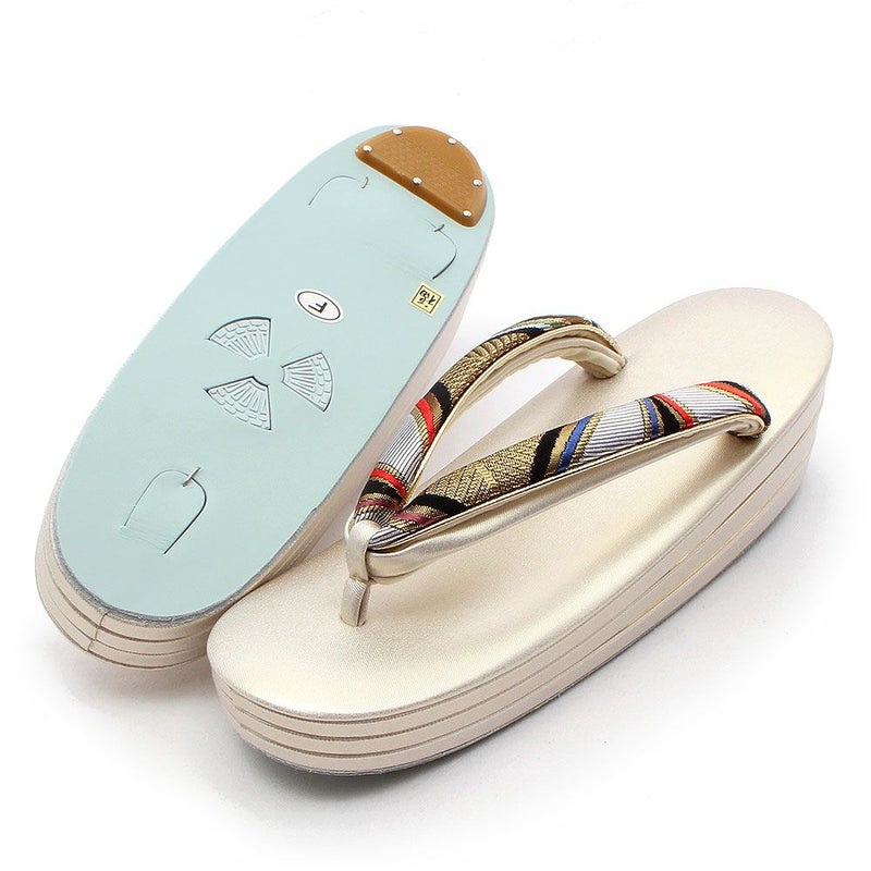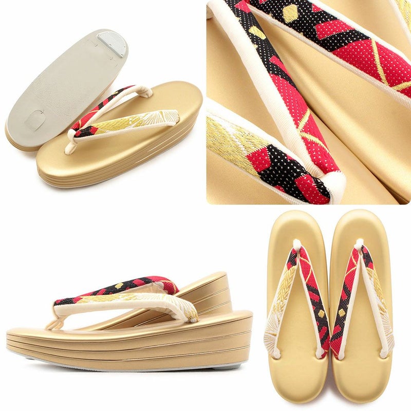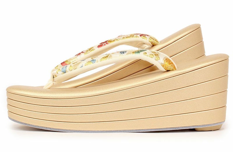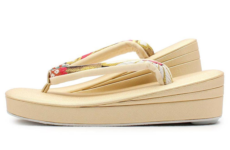 痛くなく歩きやすい、初めての方にも安心の履き心地 振袖 草履バッグセット 成人式 草履バッグセット 振袖用 紗織 フリー Lサイズ 金 花菱 西陣織 正絹帯地 3枚芯 厚底 ハイヒール ZULEN 日本製