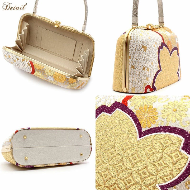 草履バッグセット 成人式 振袖用 <キステオリジナル> Sサイズ 日本製 正絹 帯地 <ゴールド/菊華紋>