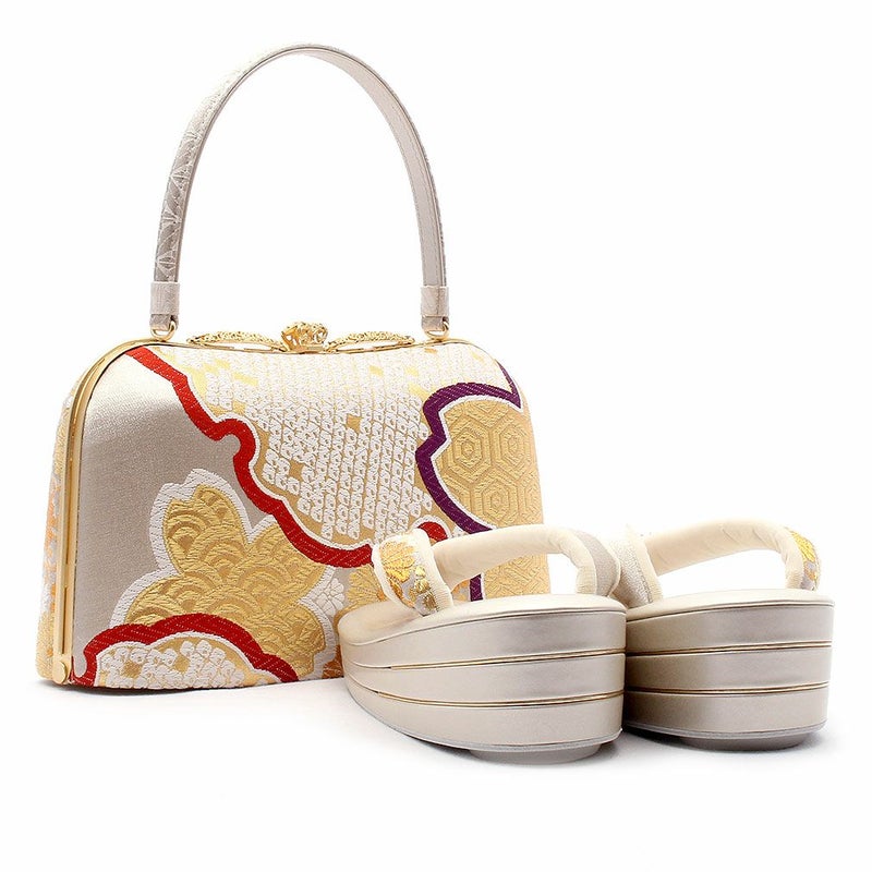 草履バックセット 成人式 振袖 紗綾形 フリーサイズ Lサイズ がま口 厚底