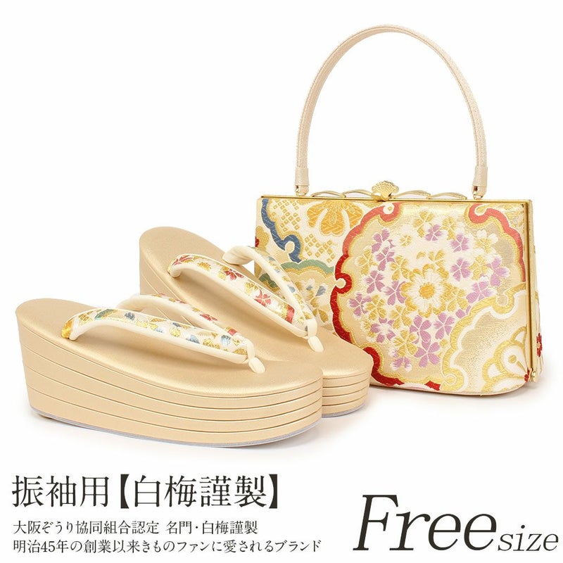振袖用草履バッグセット 白梅謹製 フリーサイズ Lサイズ 正絹 日本製