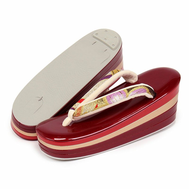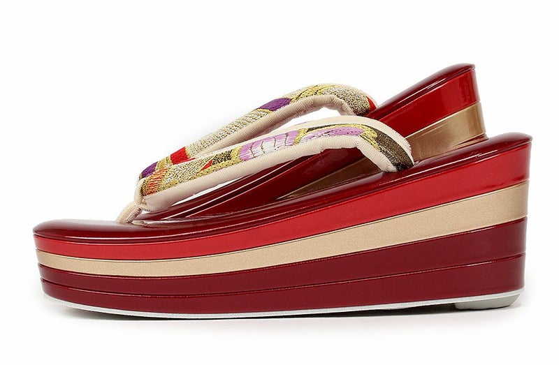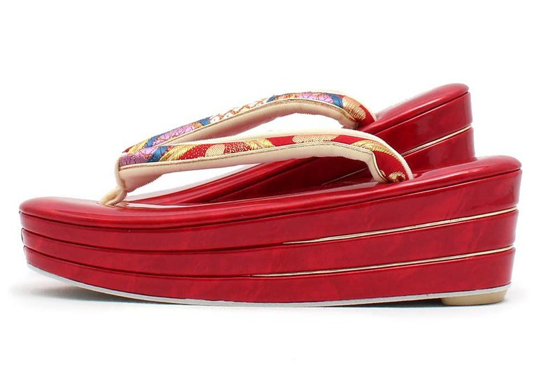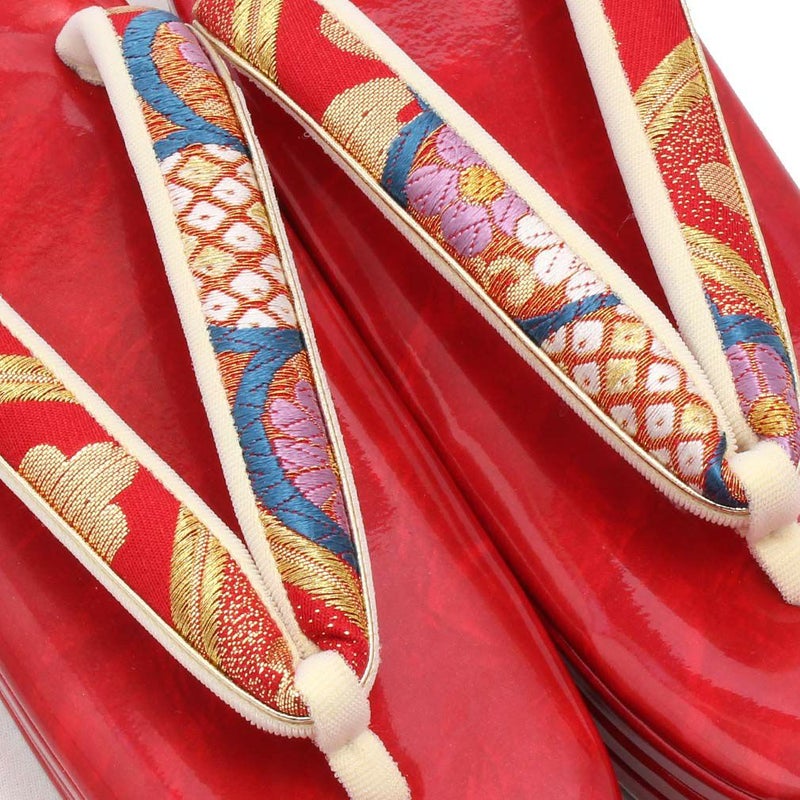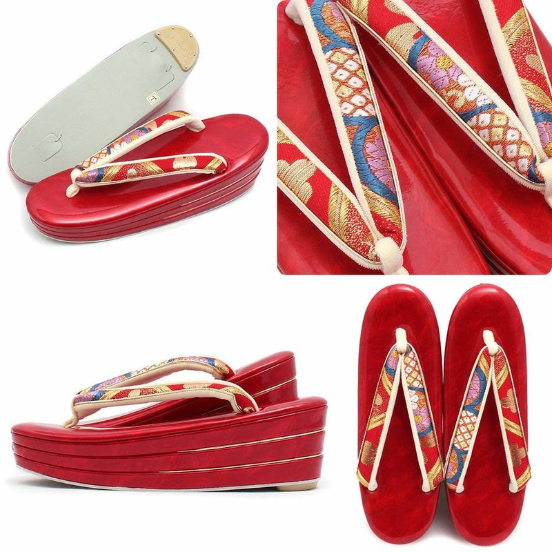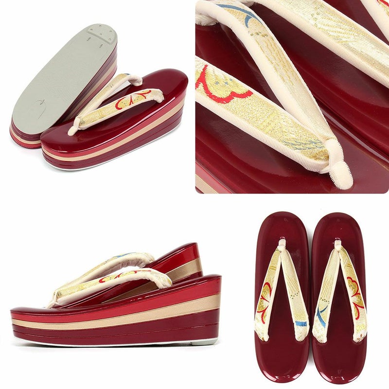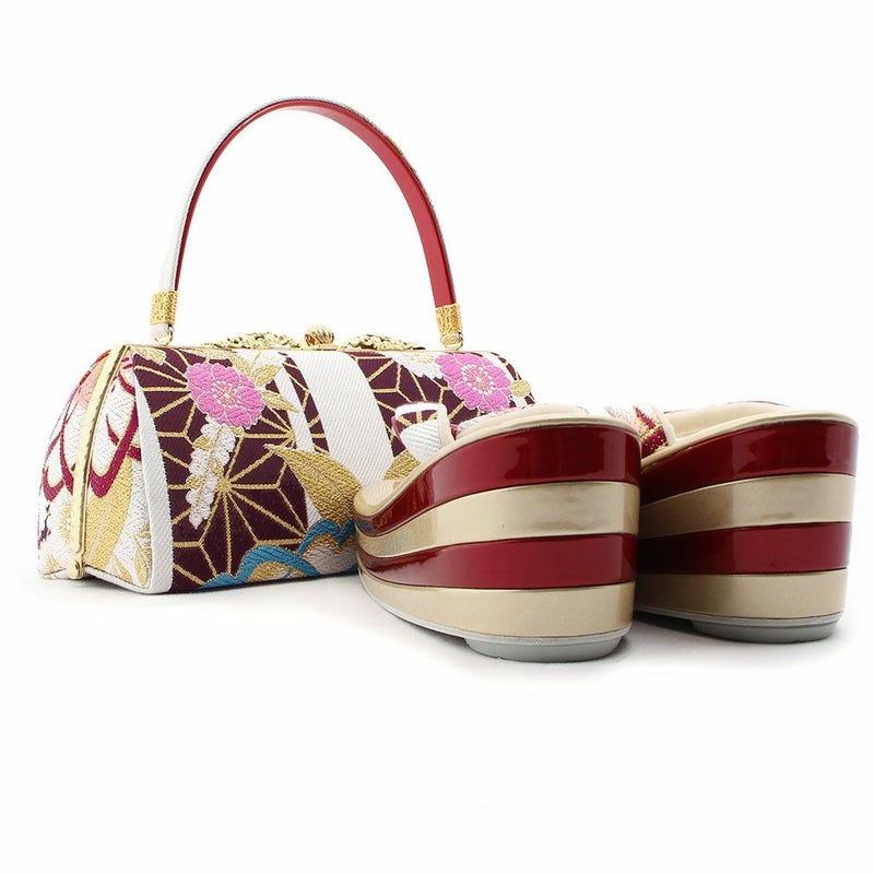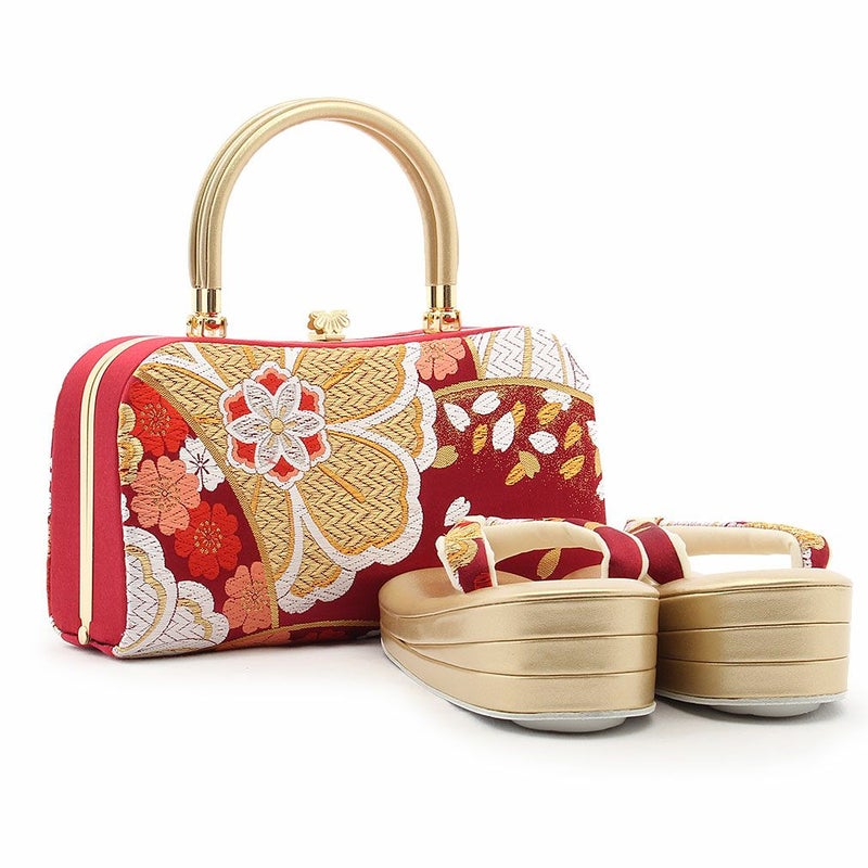 草履バックセット 振袖用 草履 厚底 Sサイズ 赤 青 ゴールド 椿 梅 帯地 エナメル 日本製