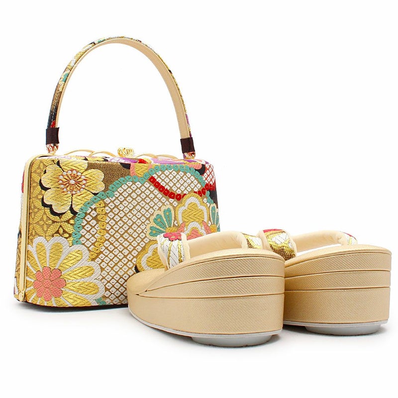 草履バッグセット 留袖用 訪問着用 フリーサイズ Lサイズ 日本製 京都西陣 <ゴールド/立涌に菊>