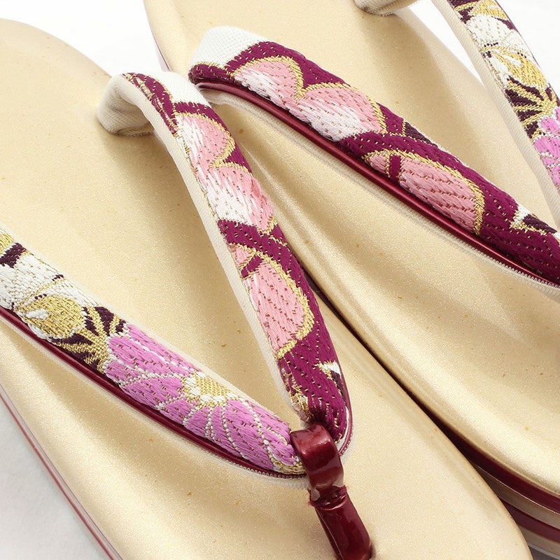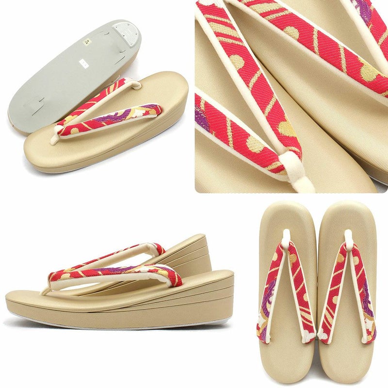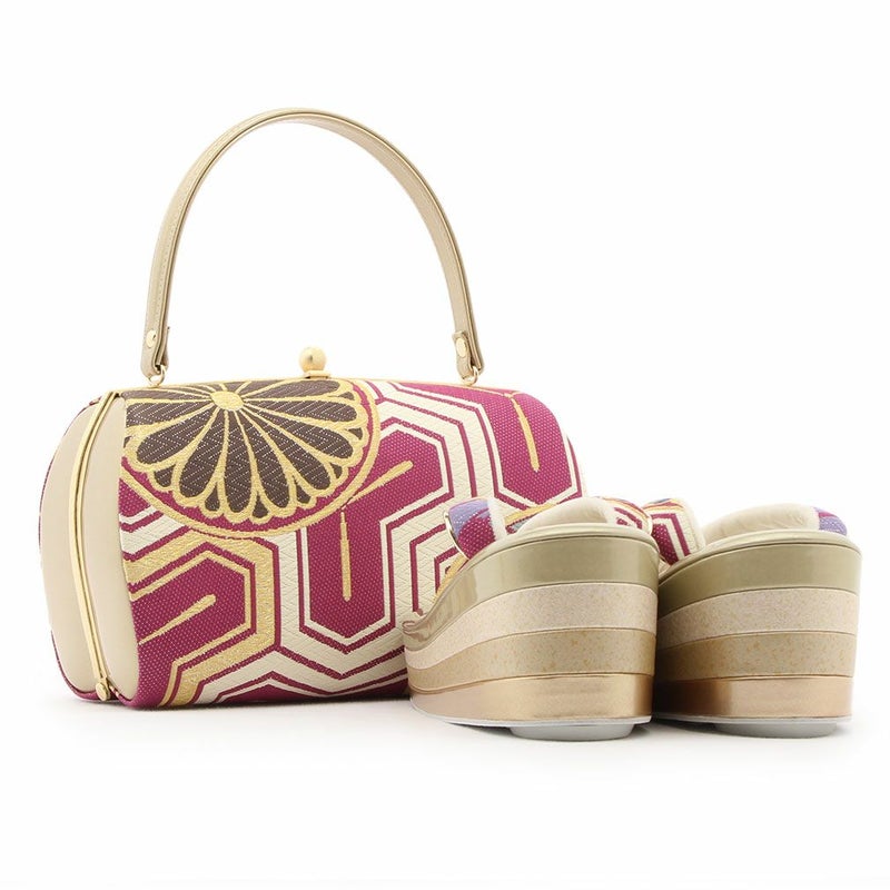 草履バッグセット 礼装用 <浅草匠> Lサイズ キステオリジナル <ゴールド系・赤ピンク/花紋> 日本製